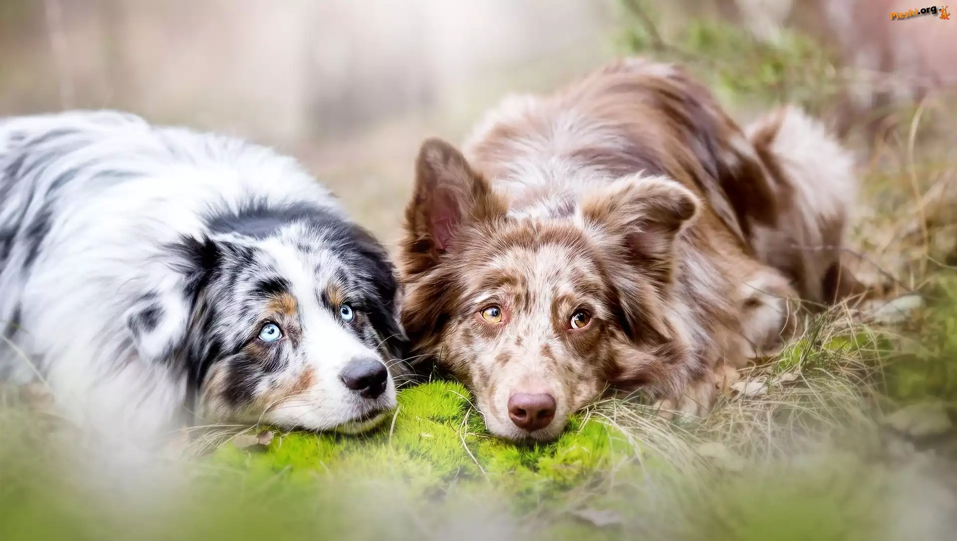 Australijski, Psy, Owczarek, Łąka, Pieski