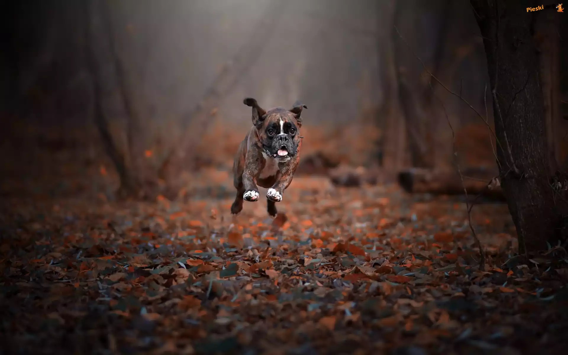Liście, Biegnący, Bokser, Pieski