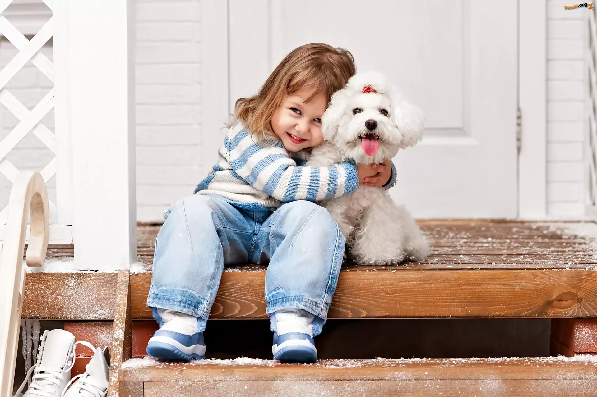 Dziewczynka, Pudel miniaturowy, Schody