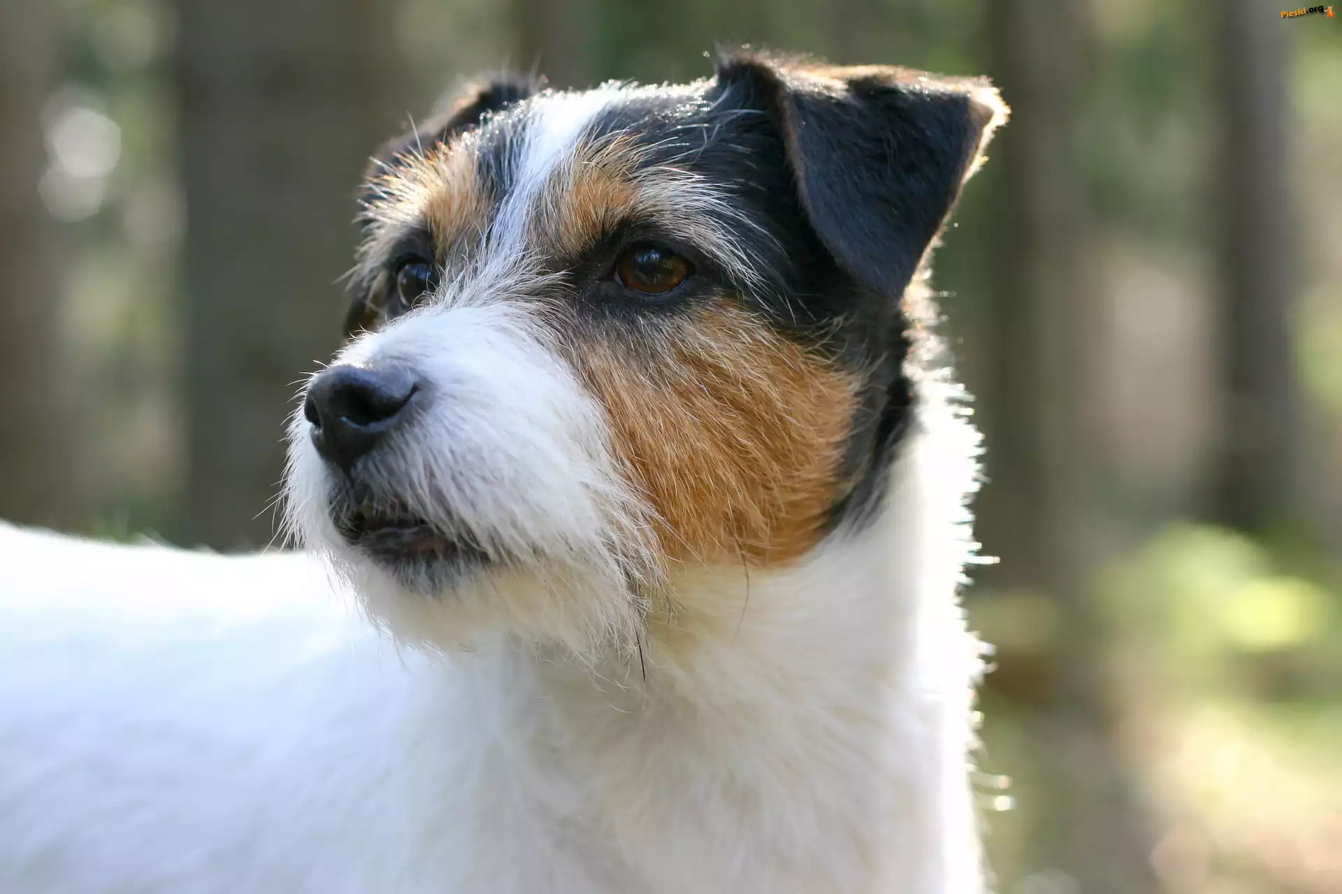 Domy, Ubranko, Parson Russell Terrier Parson Russell Terrier, most głowa, Parson Russell Terriera Parson Russell Terrier, Las Polana, Chłopiec, Mały, Szczeniaczek, Las