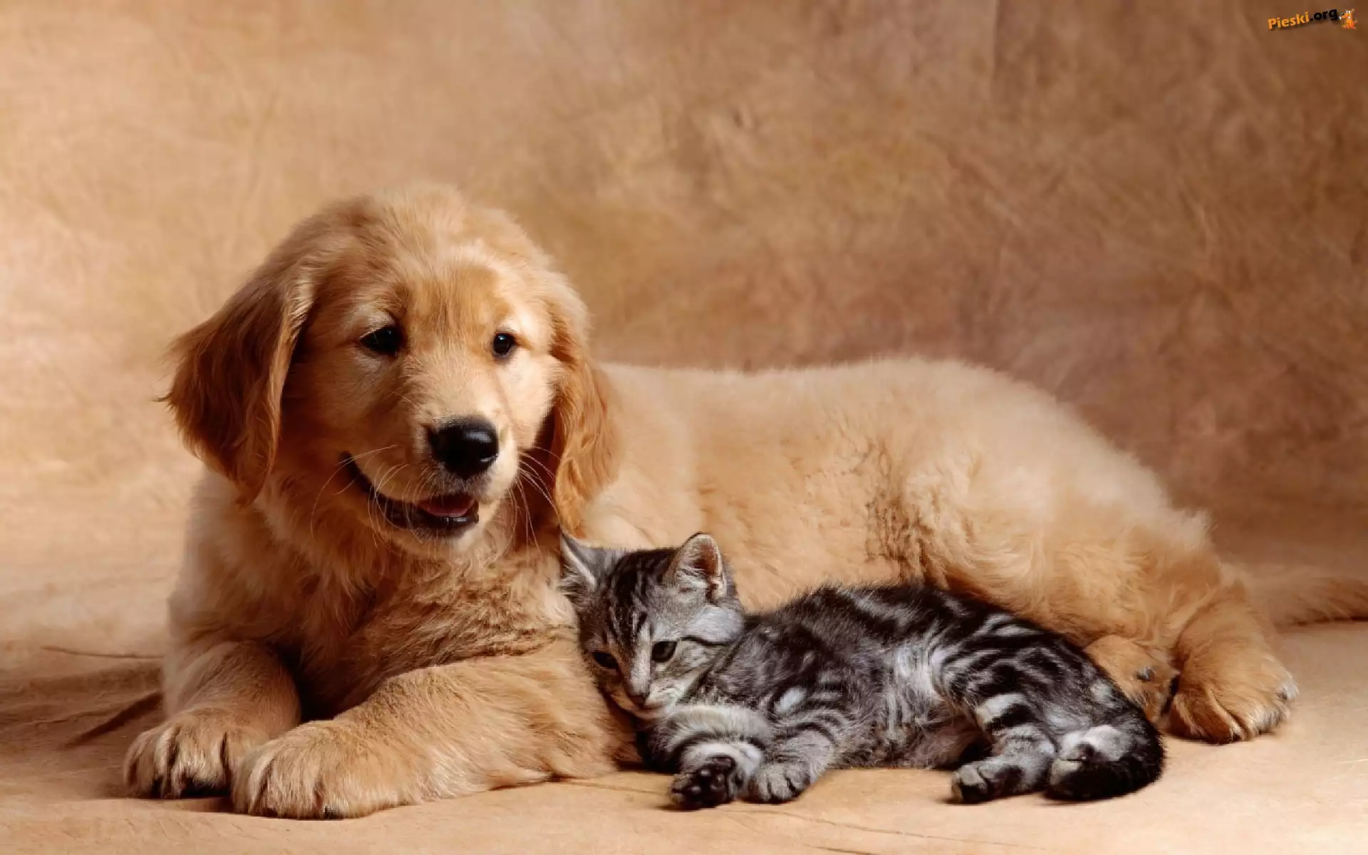 Golden Retriever, Mały, Szczeniak, Kotek, Pieski