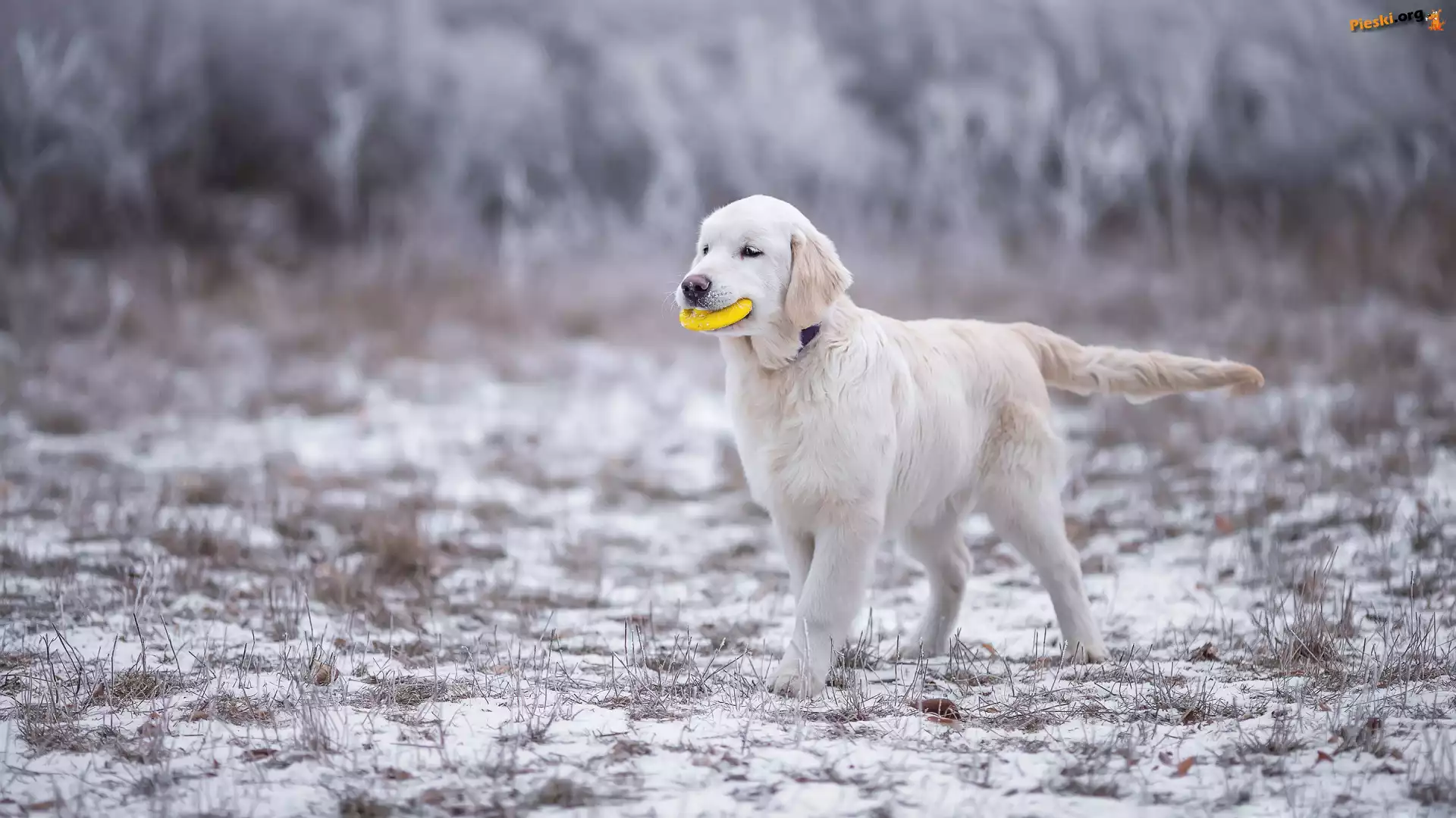 Golden Retriever, Zabawka, Pies, Szczeniak, Śnieg, Pieski