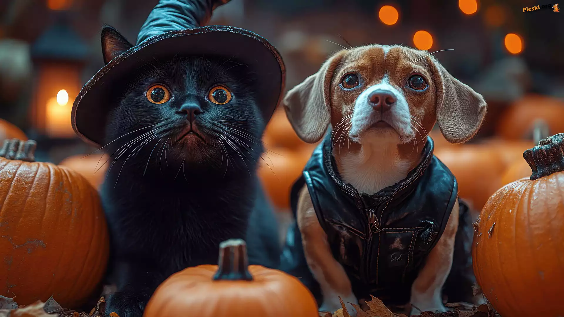 Dynie, Pies, Kot, Grafika, Kapelusz, Czarny, Pieski