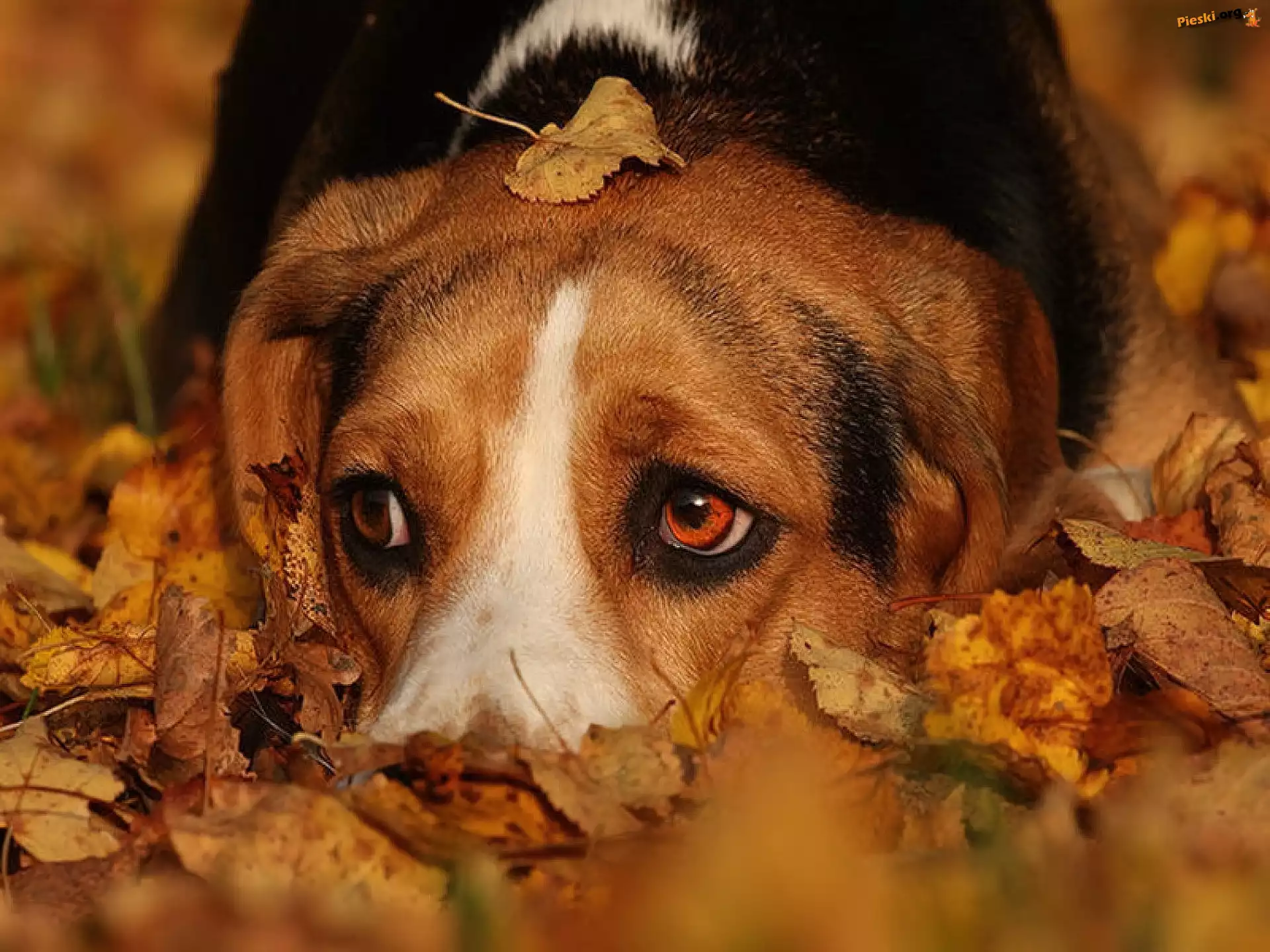 Liście, Pies, Jesienne, Beagle, Pieski