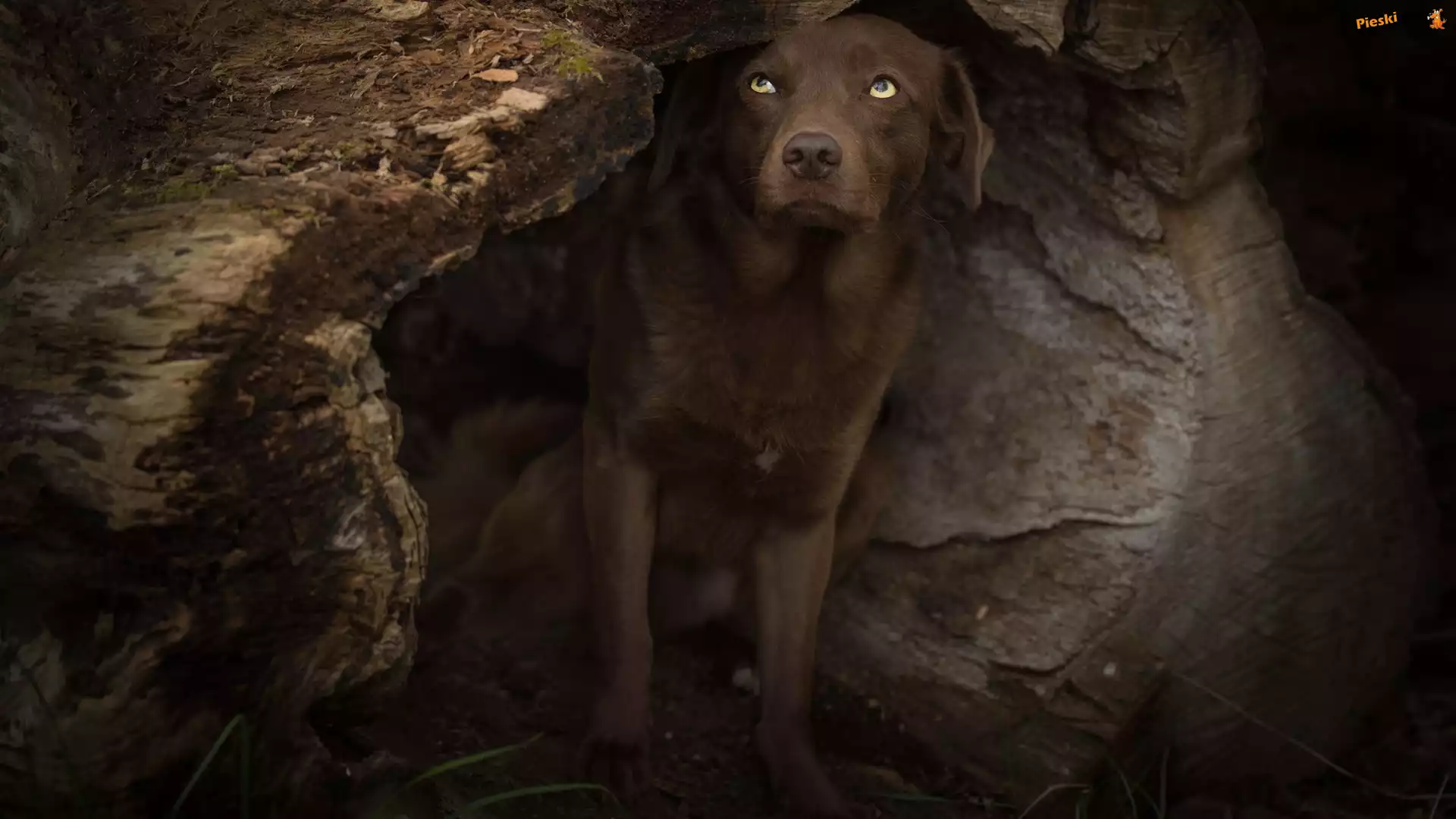 Kłoda, Labrador retriever, Pies, Wydrążona, Drzewa, Pieski