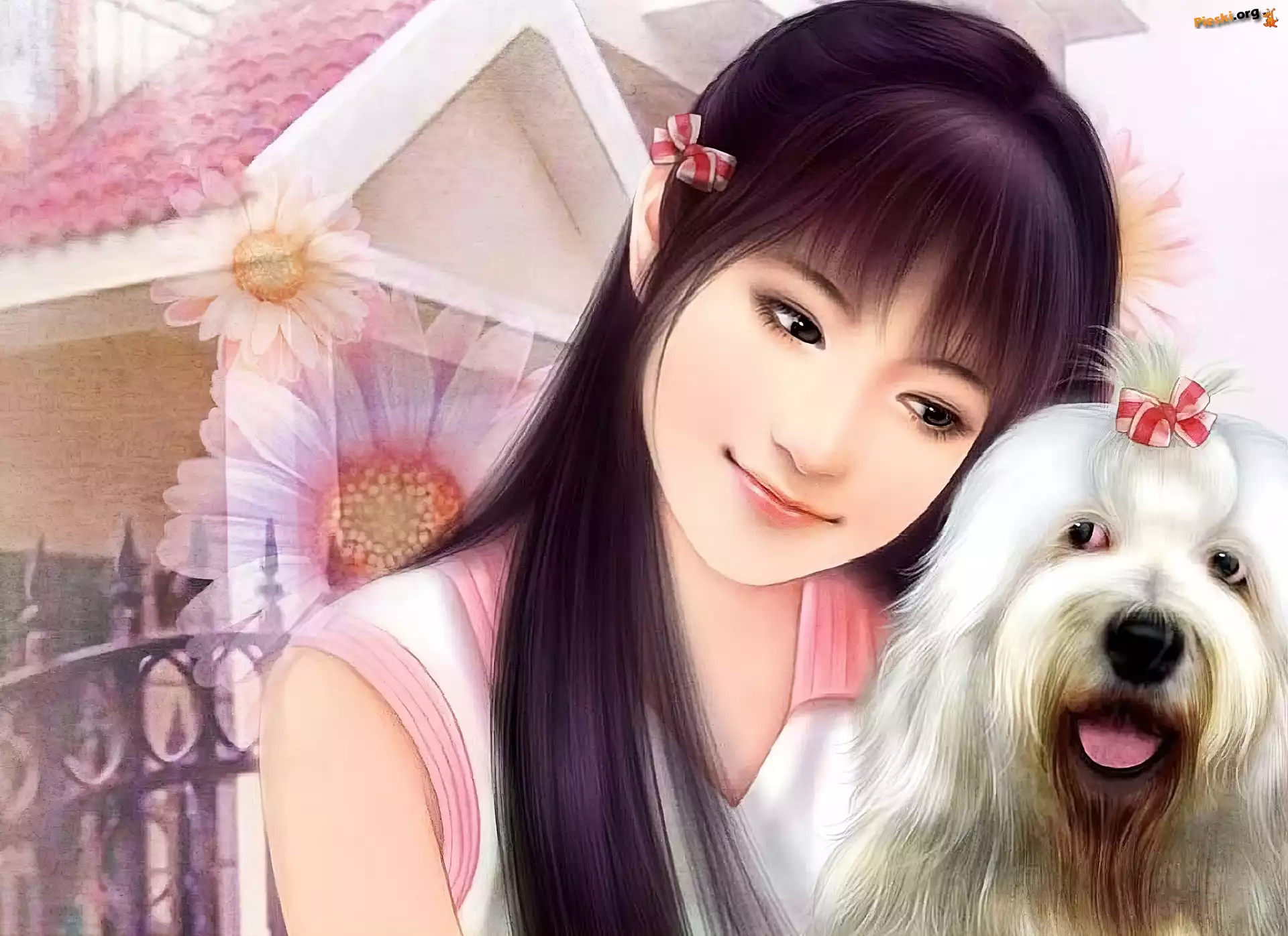 Młoda, Kobieta, Pies Szczeniak, Biały, Pies, Coton de Tulear Biały, Coton de Tulear Dwa, Coton de Tulear Coton de Tulear, fotel Kokardka, Coton de Tulear, Piesek Piesek, Coton de Tulear, Łąka Trawa, Biały, Piesek, Basen