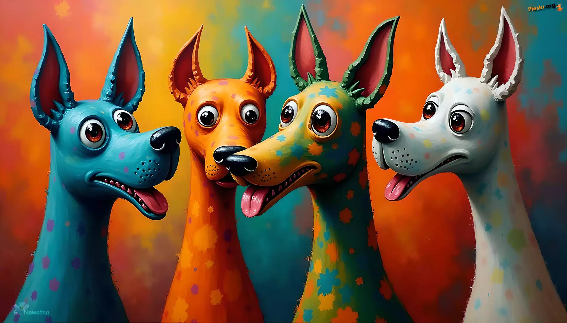 Psy, Cztery, Grafika, Kolorowe, Pieski