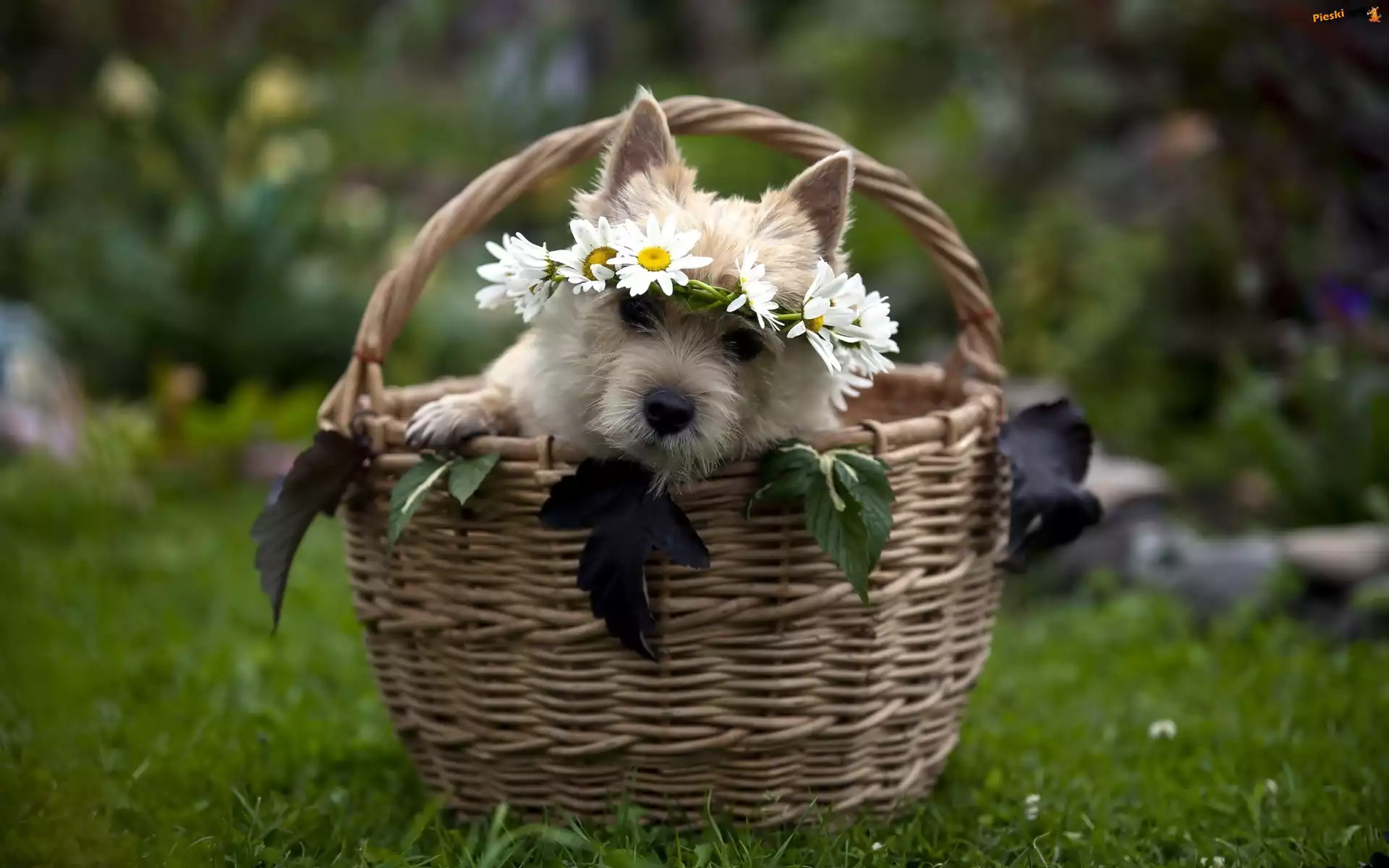 Pies, Koszyk, Wianek, Pieski