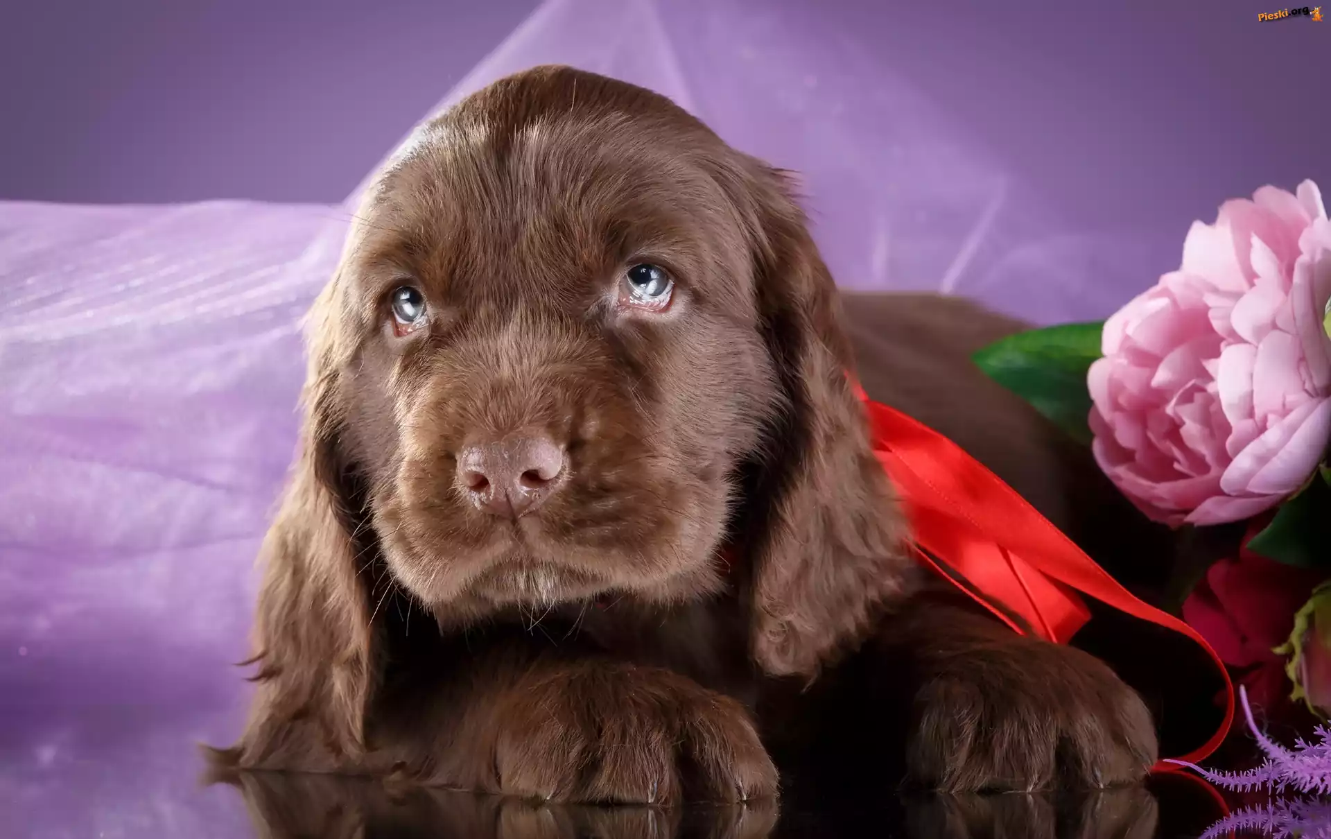 Kwiat, Szczeniak, Spaniel, Piwonia