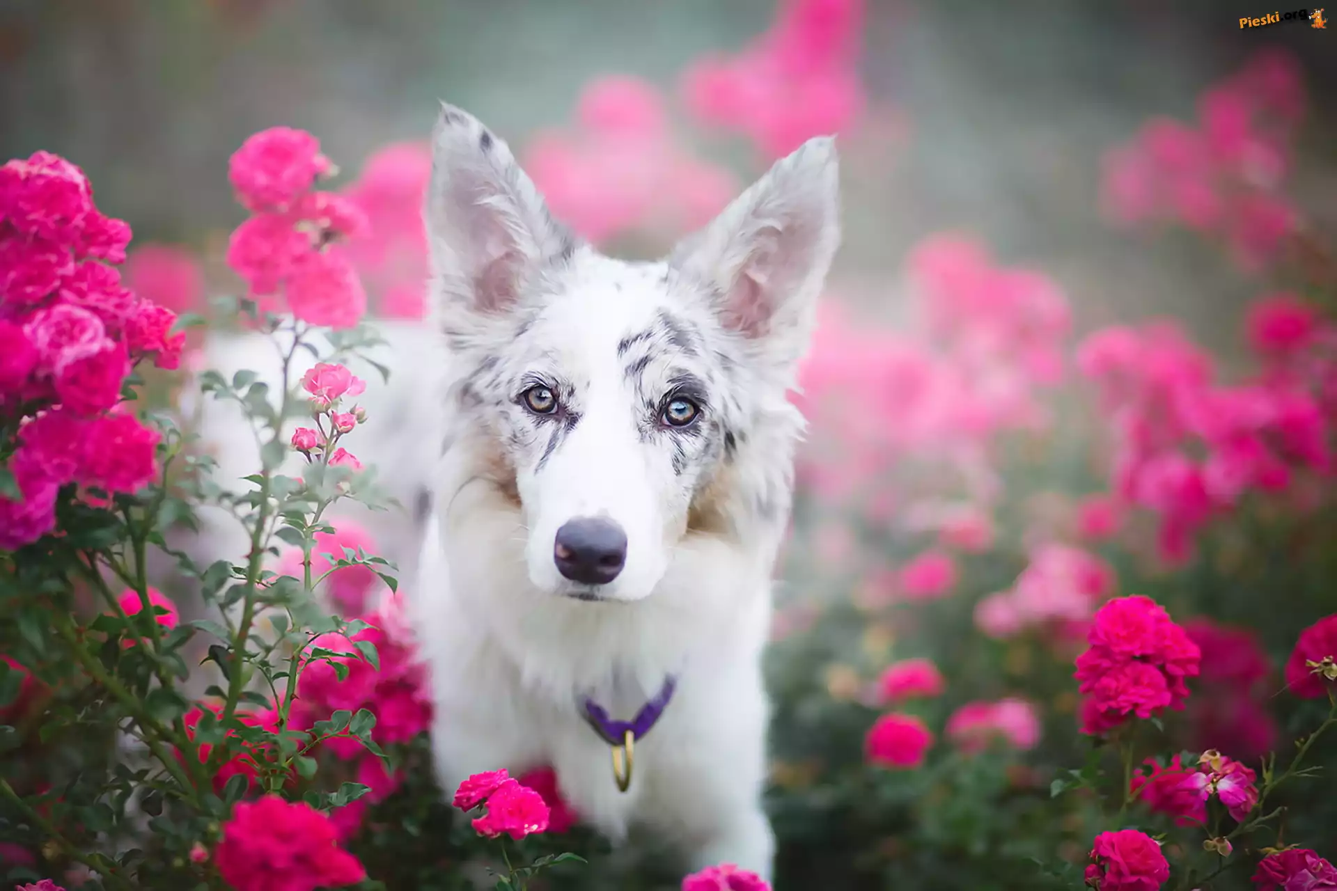 Kwiaty, Border collie, Portret, Róże