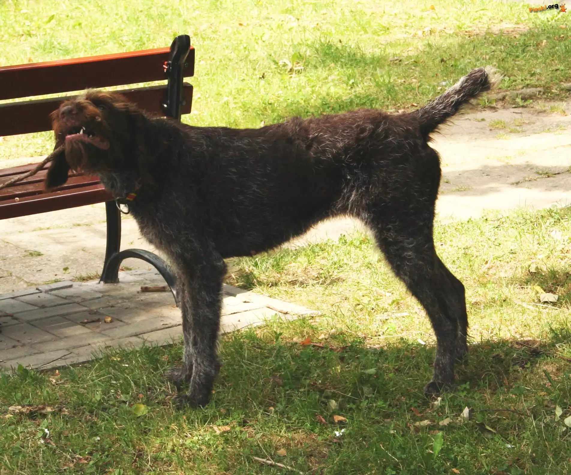 ławka, Wyżeł niemiecki szorstkowłosy, trawa, kij Wyżeł niemiecki szorstkowłosy Sofa, Szczeniaki, Wyżły niemieckie