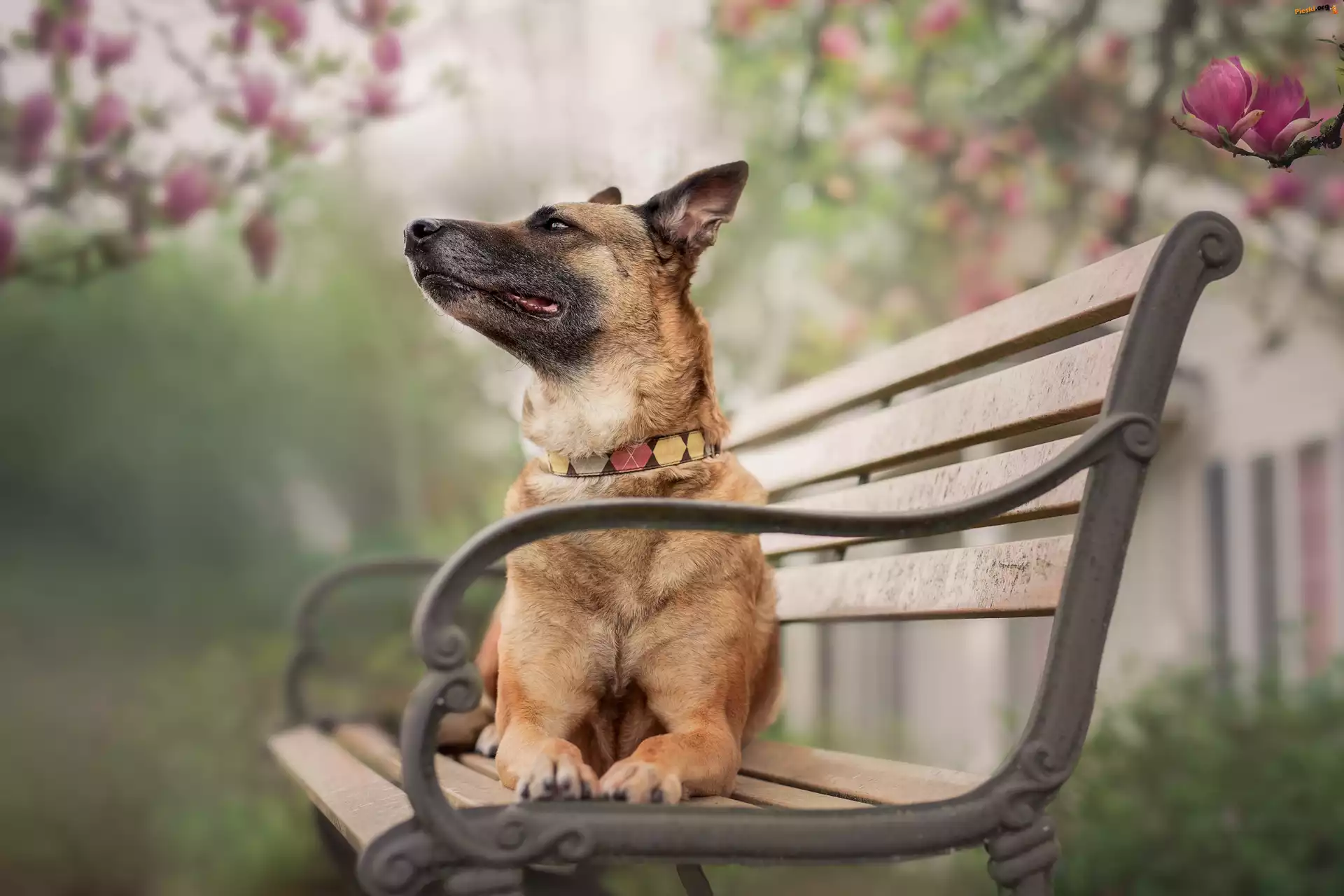 Magnolia, Ławka, Pies, Pieski