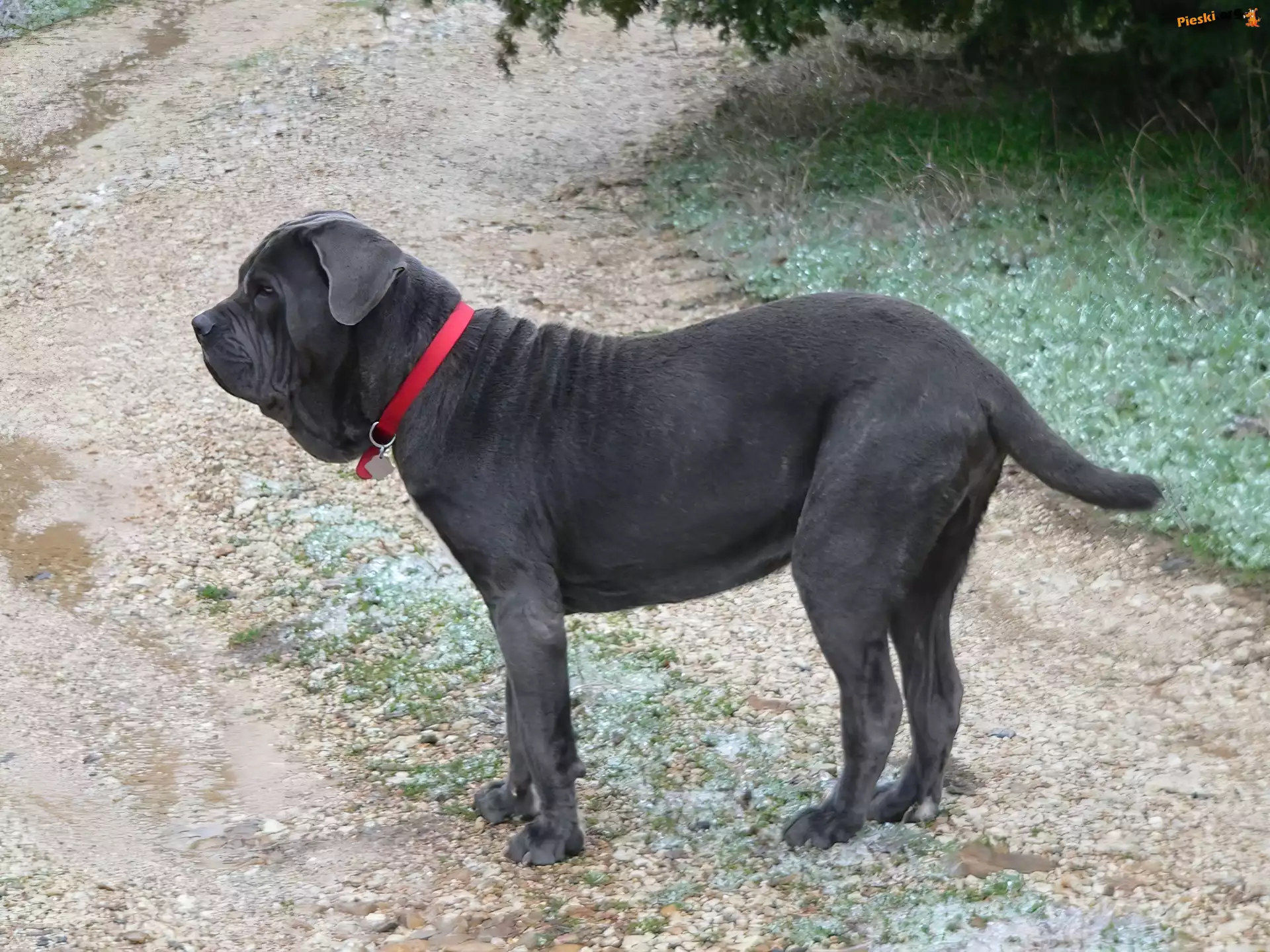 Mastif neapolitański, szare, umaszczenie Mastif neapolitański, Pies, Szczeniak, Fotel Morda, Mastifa neapolitańskiego Mastif, Odpoczynek Mastif neapolitański, czerwona, obroża Pies, Mastif, Neapolitański