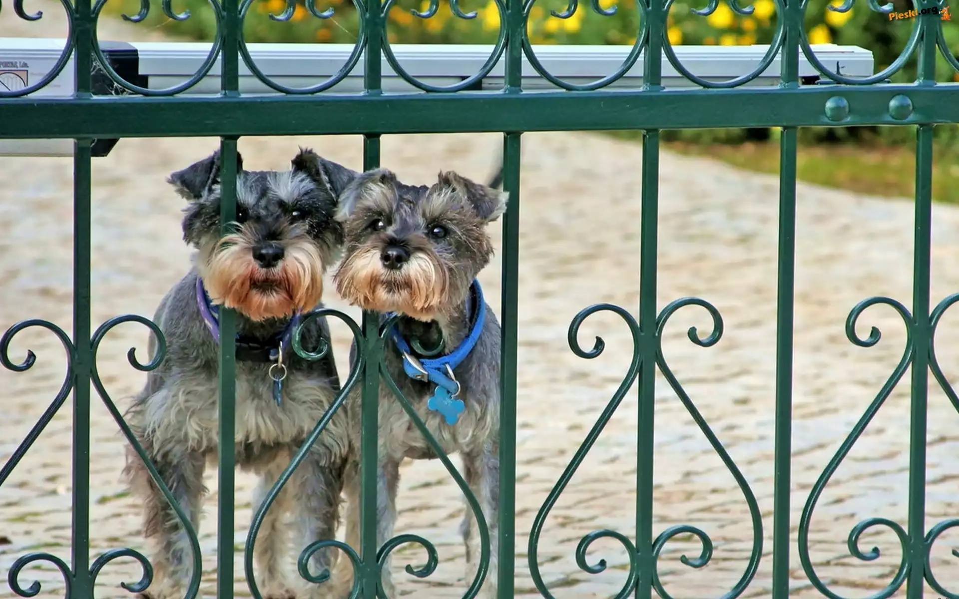 Miniaturka, Psy, Dwa, Sznaucery, Ogrodzenie, Pieski
