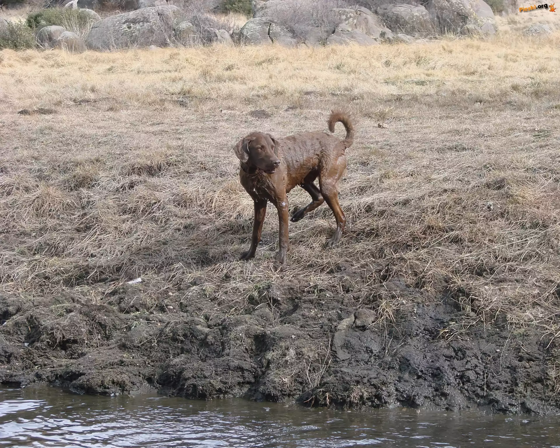 Chesapeake Bay retriever, flaga USA Brązowy, Chesapeake Bay retriever Dwa, Chesapeake Bay retrievery, kaczki Piękny, duży, Chesapeake Bay retriever Chesapeake Bay retrievery, mokre, Dwa Mokry, Chesapeake Bay retriever Pysk, Chesapeake Bay retrievera Chesapeake Bay retriever, niebieska, woda