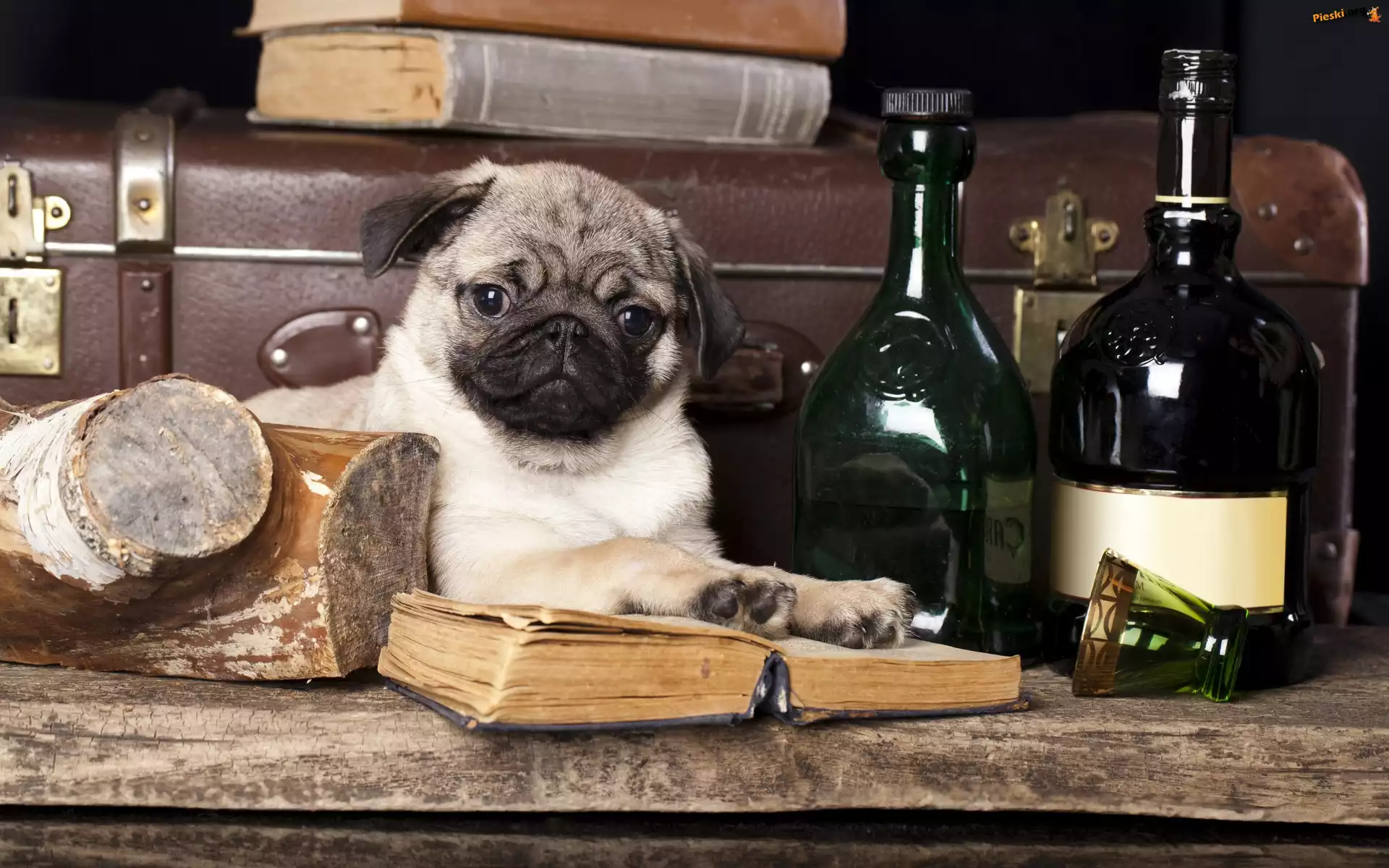 Mops, Pies, Szczeniak, Butelki