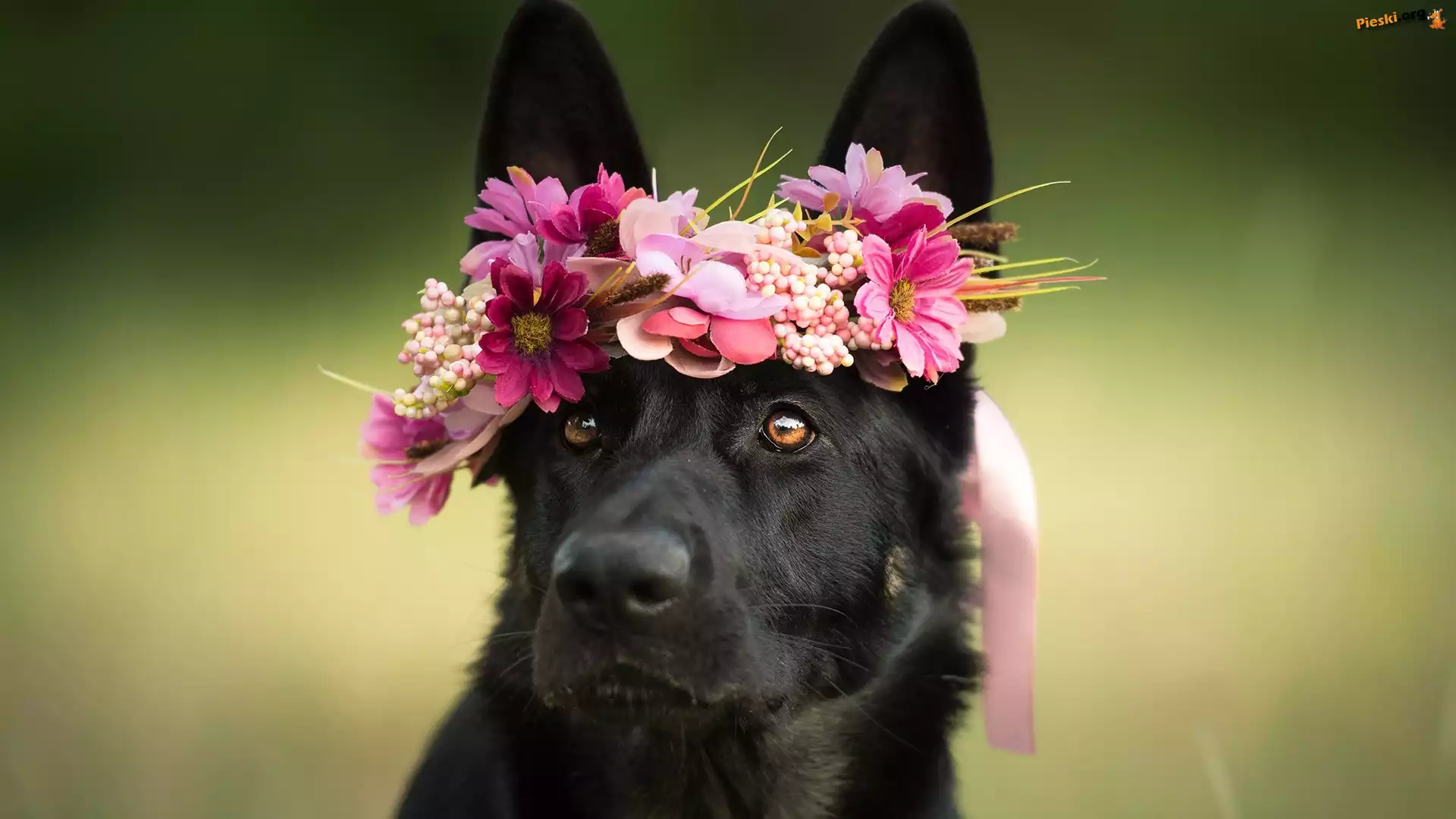 Owczarek niemiecki, Wianek, Kwiaty, Pieski