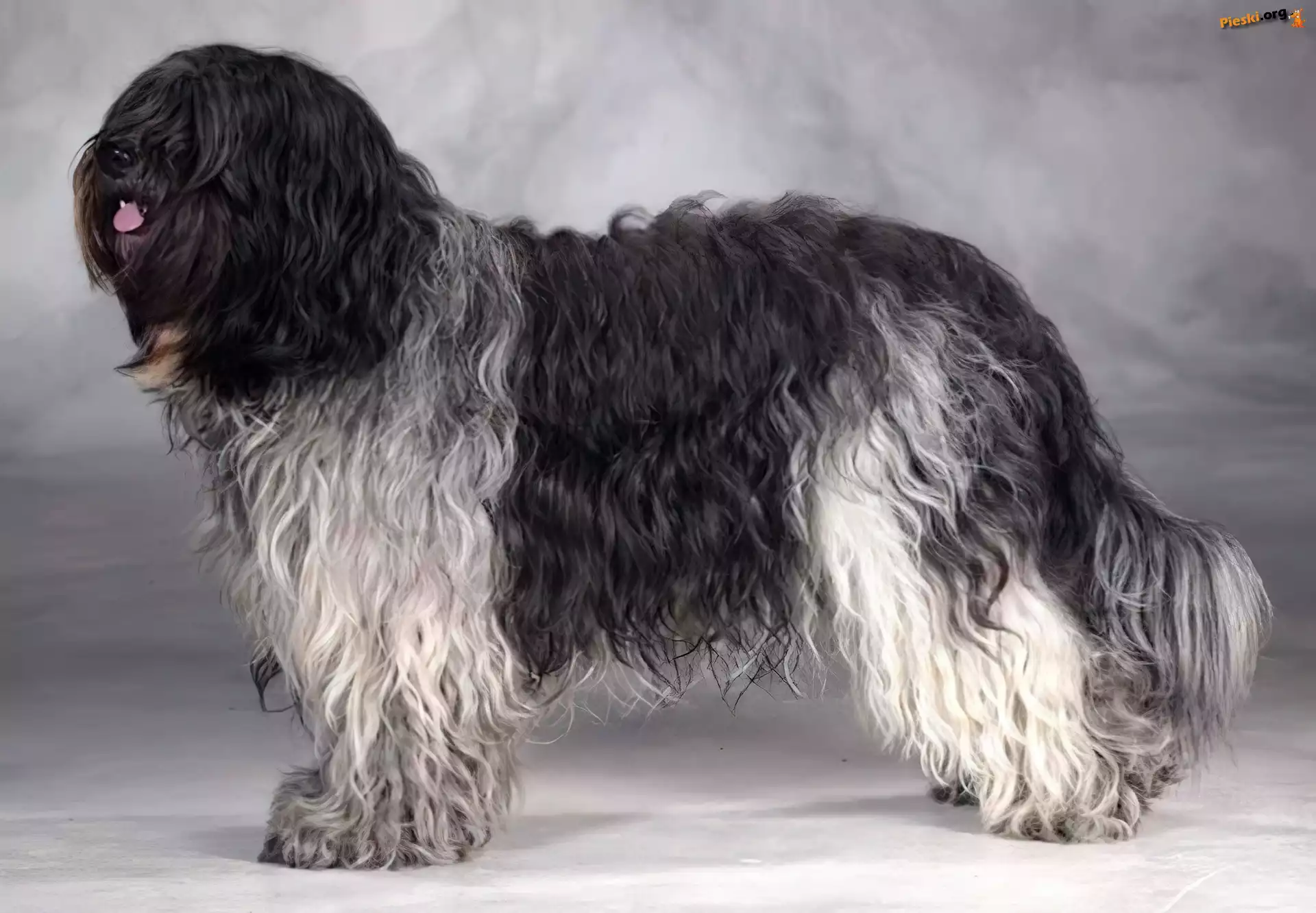 Pasterski, Schapendoes Schapendoes, białe, kwiatki Dwa, szaroniebieskie, Schapendoesy