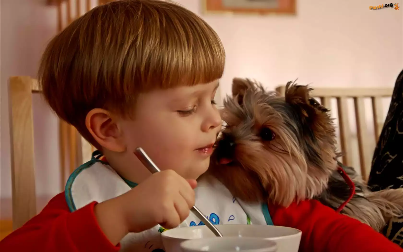Dziecko, Pies, Posiłek, Pieski