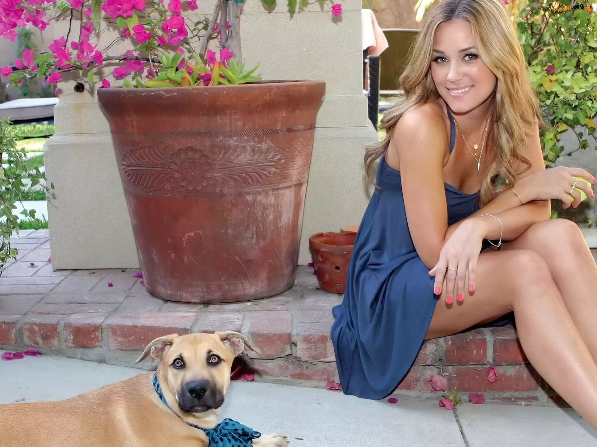 Pies, Uśmiechnięta, Dziewczyna, Doniczka