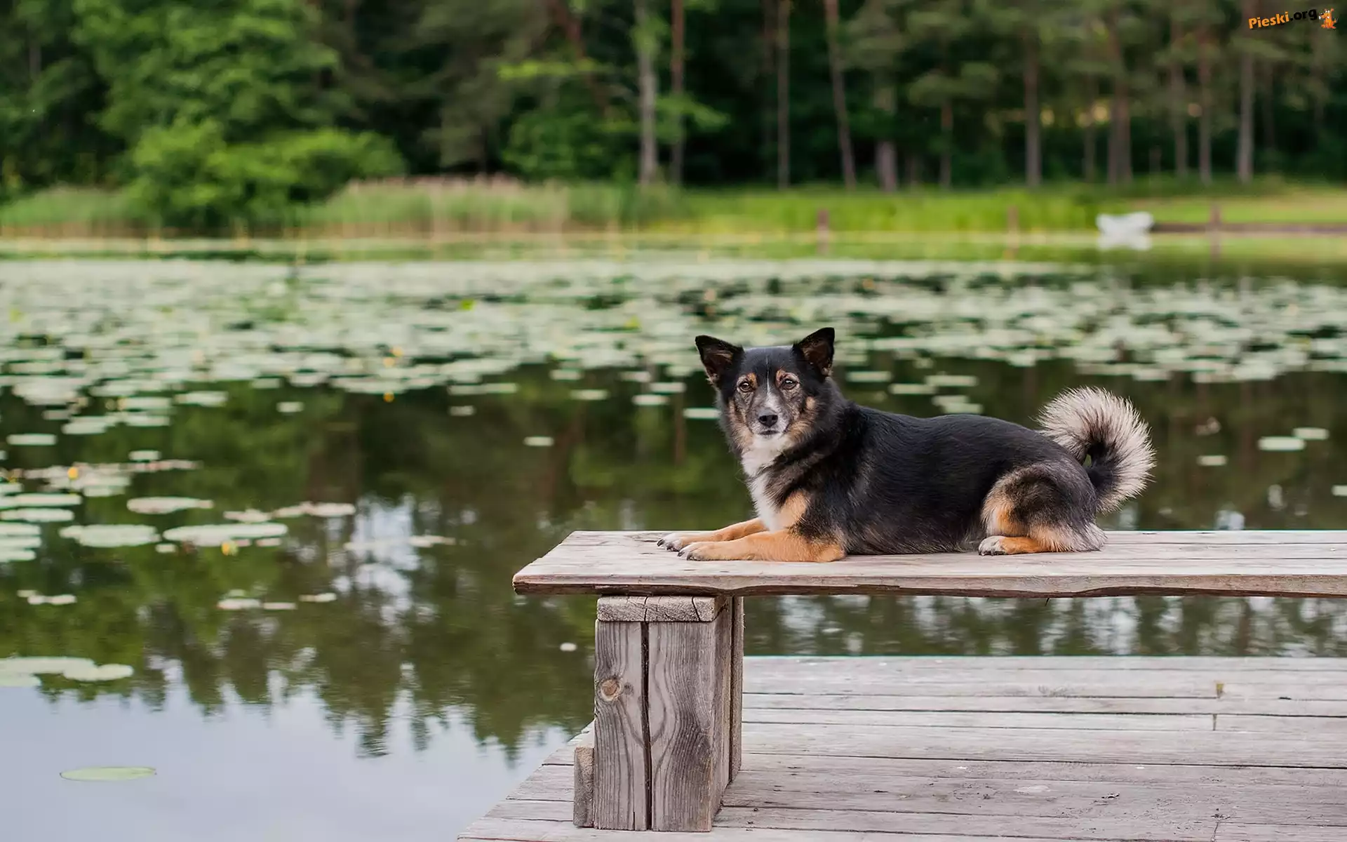 Pomost, Pies, Ławka, Jezioro, Piesek, Staw, Ławeczka, Pieski