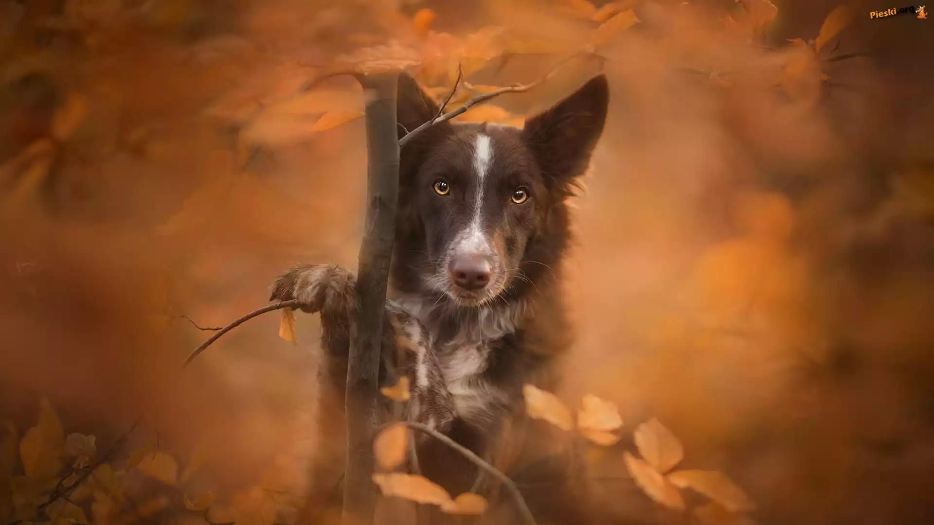 Liście, Pies, Rozmyte, Mordka, Border collie, Drzewko, Tło, Pieski