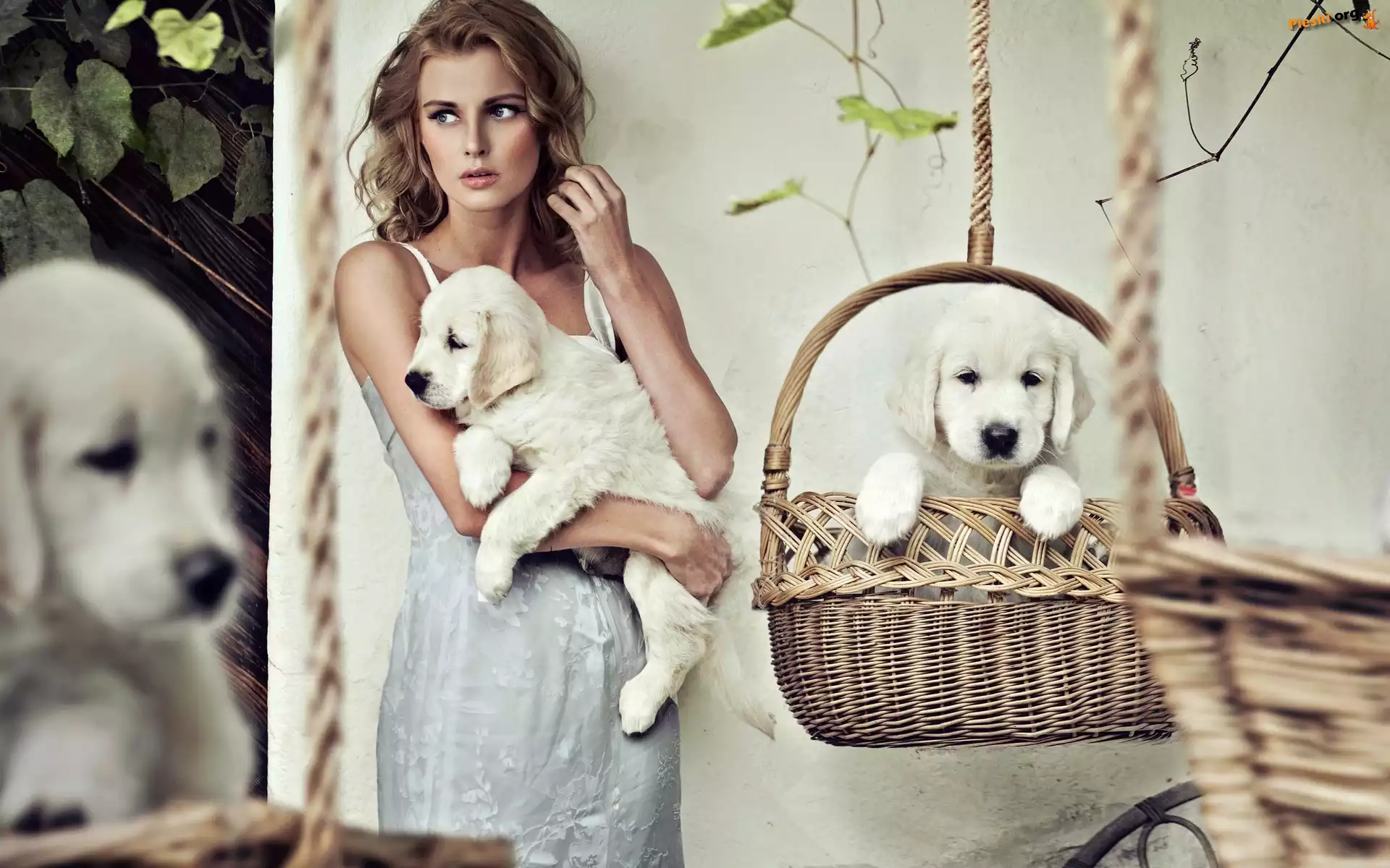 Kobieta, Pieski, Kosz