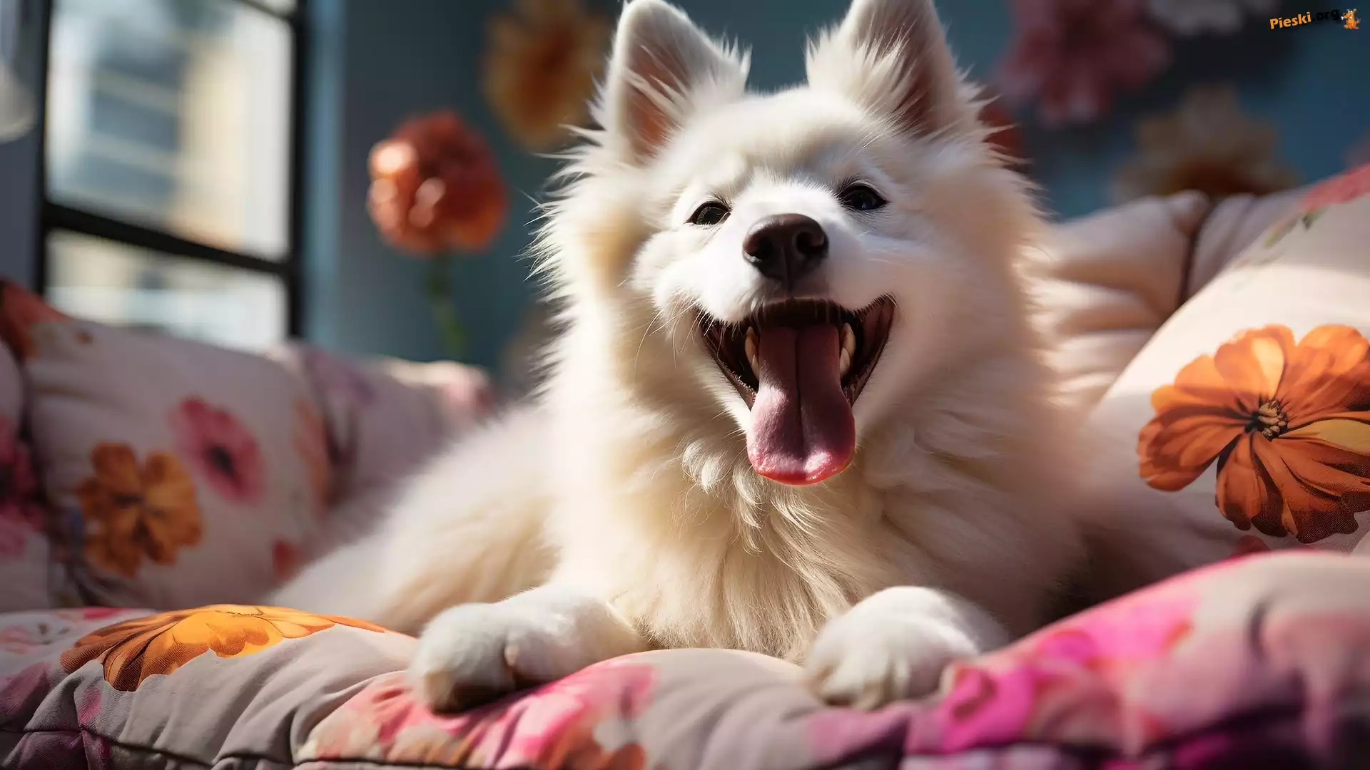 AI, Pies, Leżący, Poduszki, Biały, Język, Kołdra, Pieski