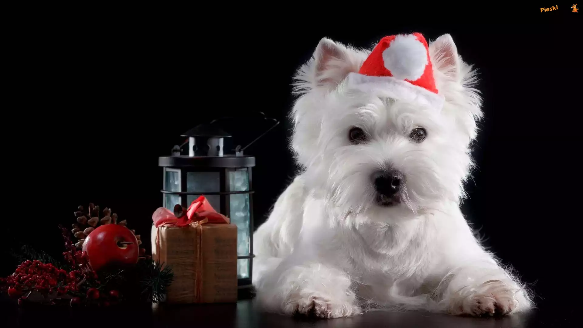 Mikołaja, Biały, Lampion, West Highland White Terrier, Pies, Czapka, Prezent, Pieski