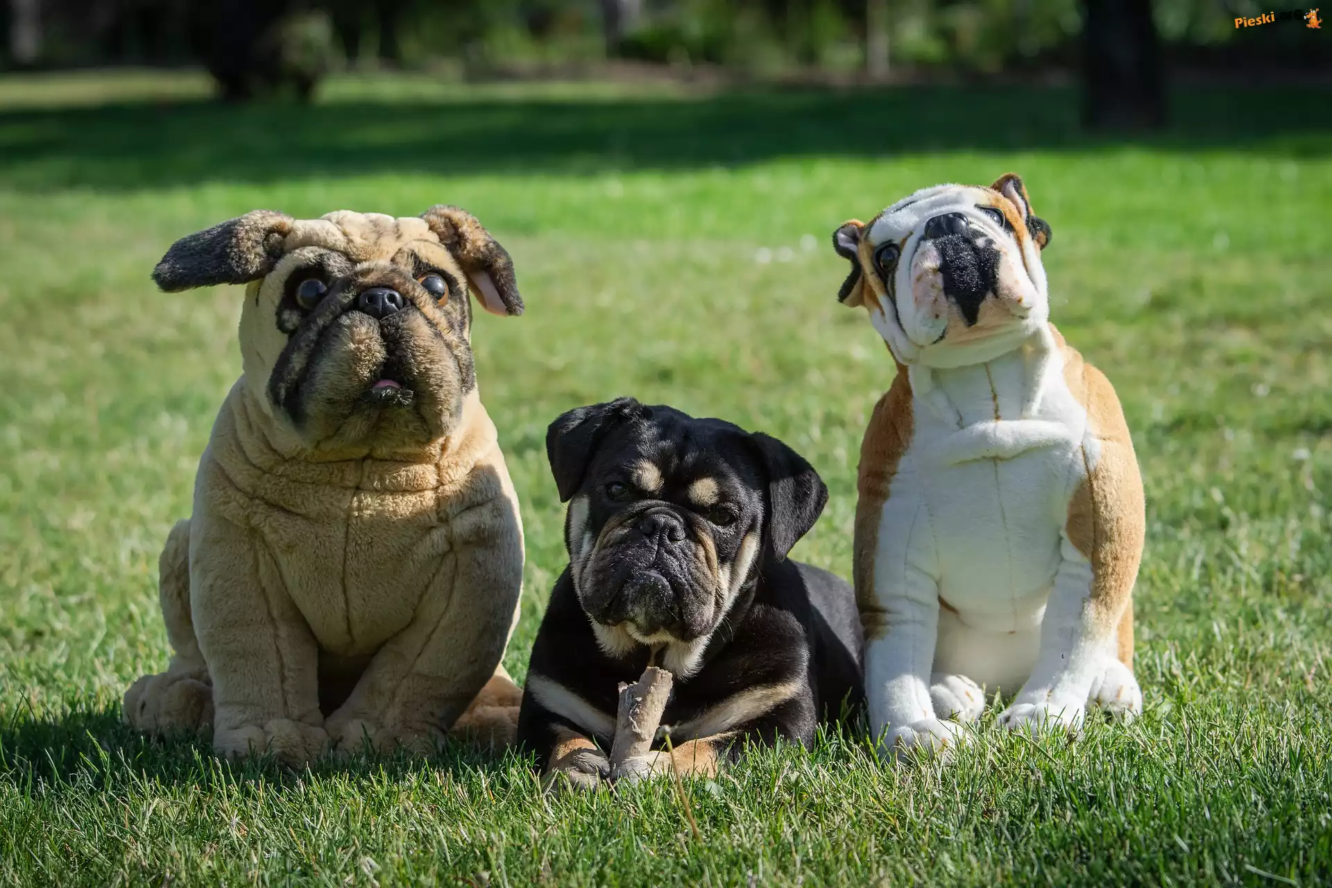 Pluszowe, Psy, Pies, Dwa, Buldog, Pieski