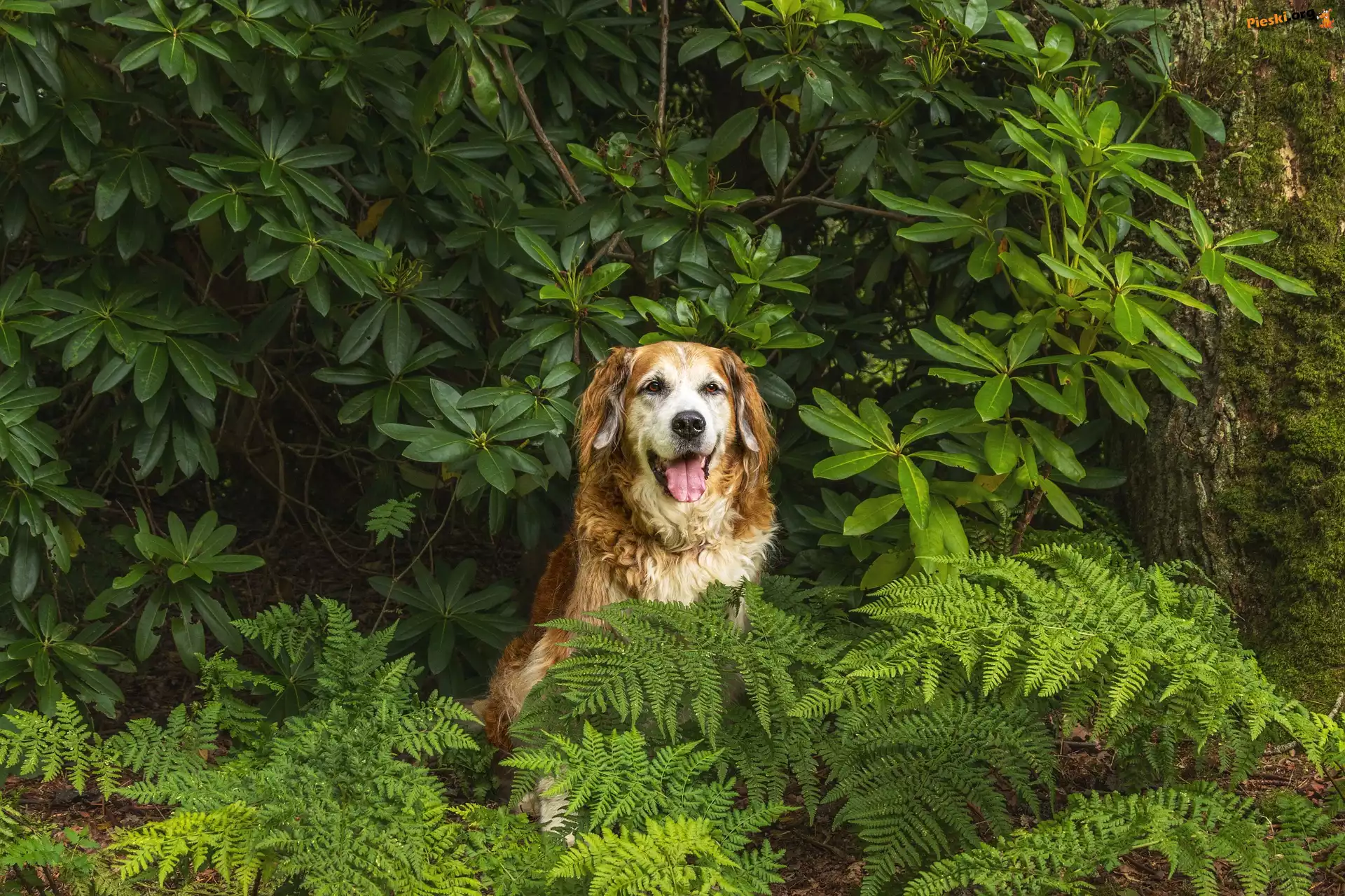 Rododendron, Paprocie, Pies, Pieski