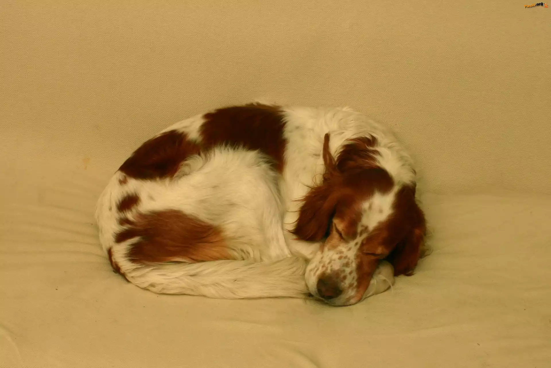 skulony, śpiący, Seter irlandzki czerwono-biały, Pieski