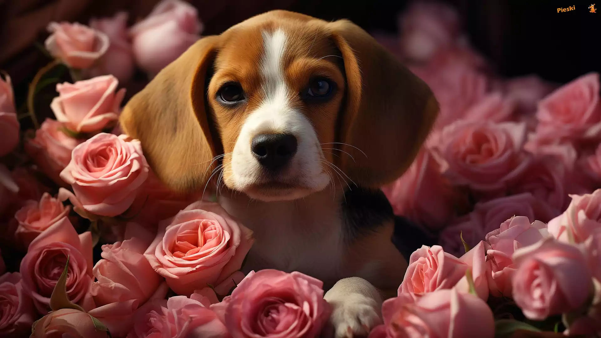 Mordka, Szczeniak, Beagle, Róże, Pies, Pieski