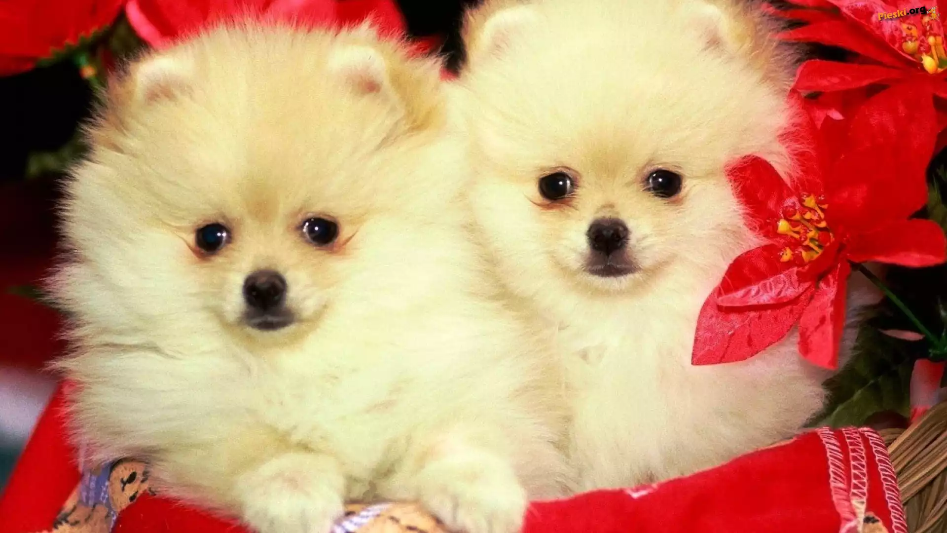 Dwa, Psy, Szpice miniaturowe, Pieski