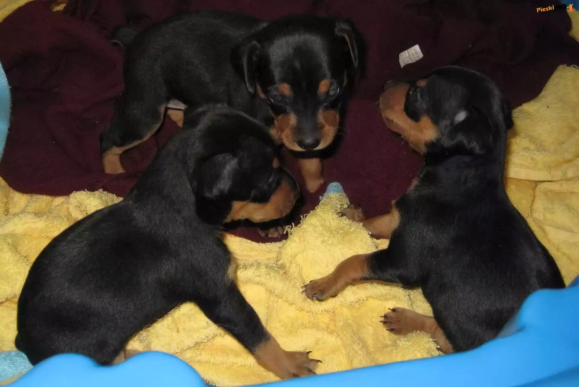 Pinczer miniaturowy, szczeniaki, trzy, czarne