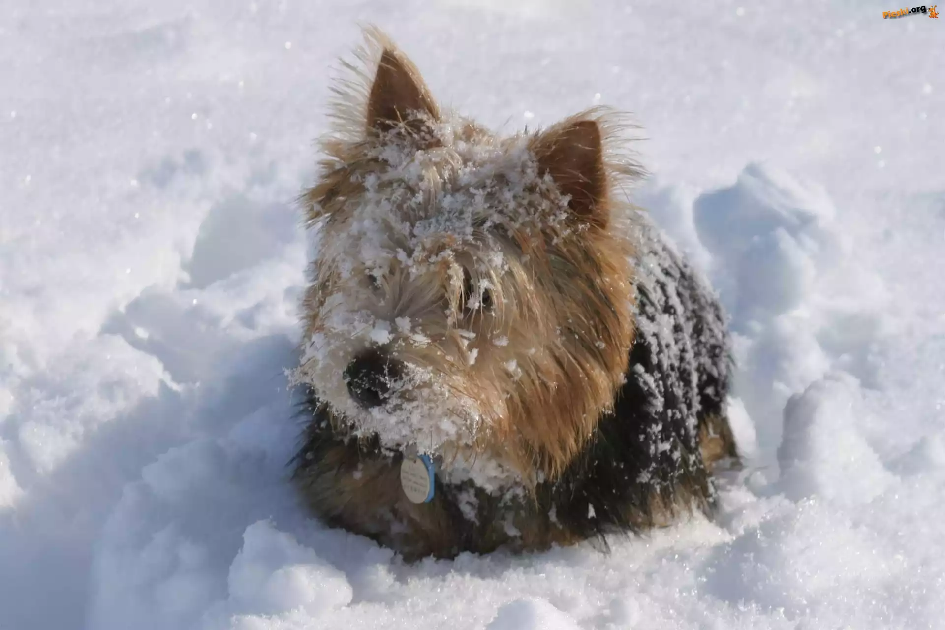 Piesek, Norwich terrier Norwich terrier Norwich terrier, śnieg czarno-rudy, Norwich terrier Pies, Czarna, Obroża