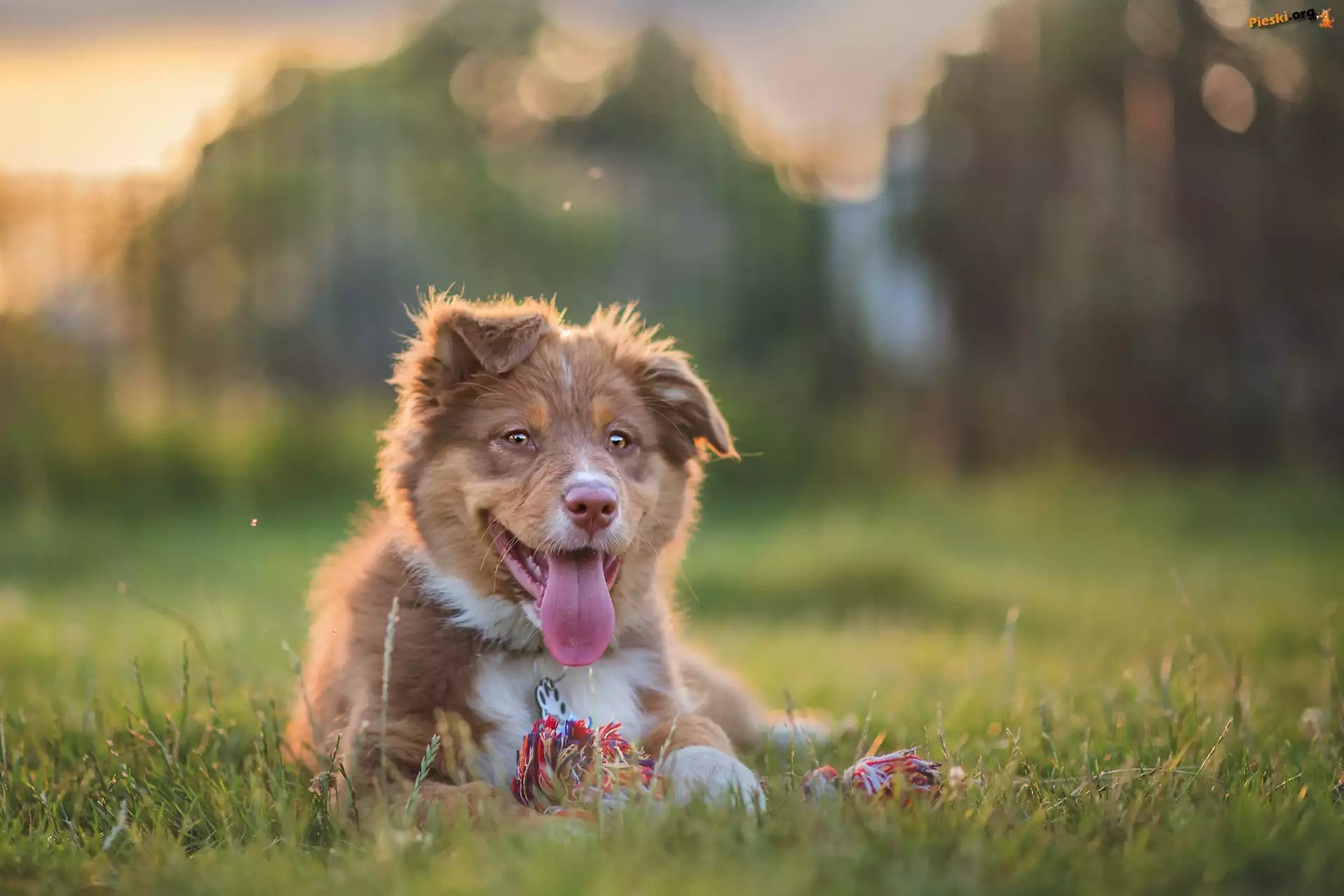 Trawa, Owczarek australijski, Łąka, Zabawka, Pieski