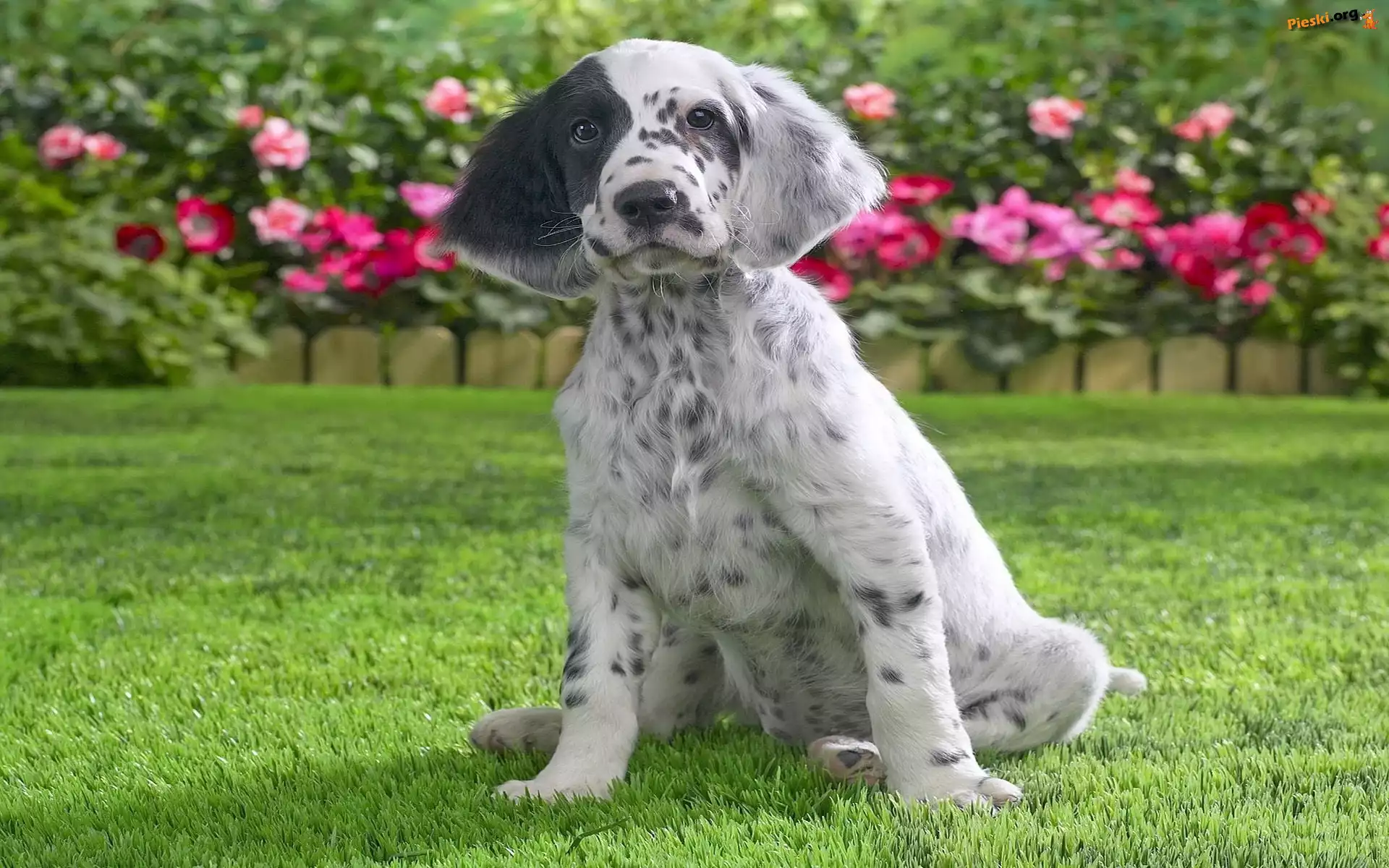 Trawa, Pointer, Łatka, Kwiaty, Pieski