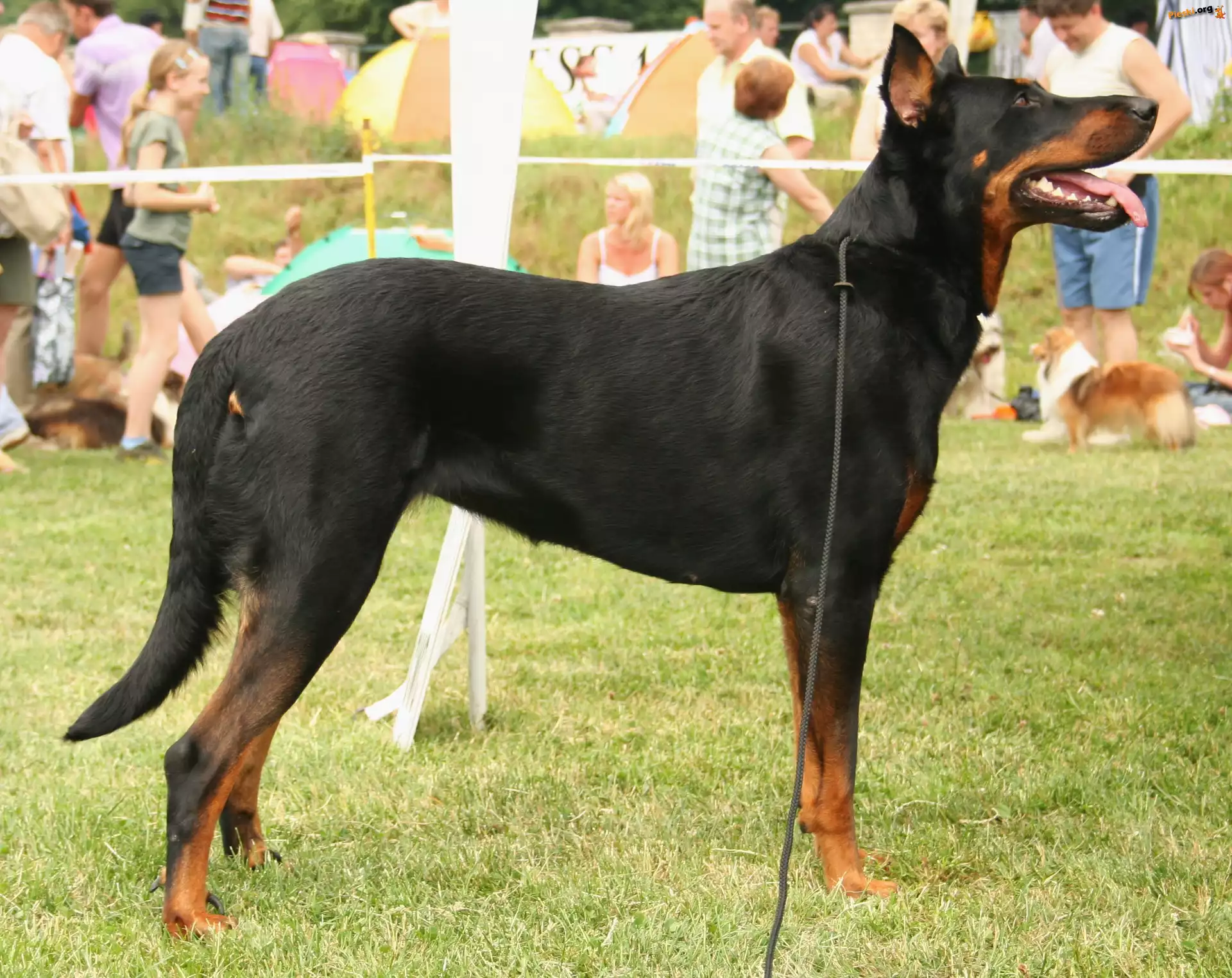 Dwa, Owczarki francuskie Beauceron Beauceron, obroża, łańcuch Dwa, leżące, Beaucerony Beauceron Głowa, Owczarka francuskiego Beaucerona Owczarki francuskie Beaucerony, czarne, Trzy Beauceron, łapy przewrócone, Trzy, Beaucerony, drzewo Słodki, szczeniak, Beauceron Młody, Owczarek francuski Beauceron Owczarek francuski Beauceron, jęzor, kij Owczarek francuski Beauceron, kamienie Pies, Trawa, Ludzie Czarny, Beauceron