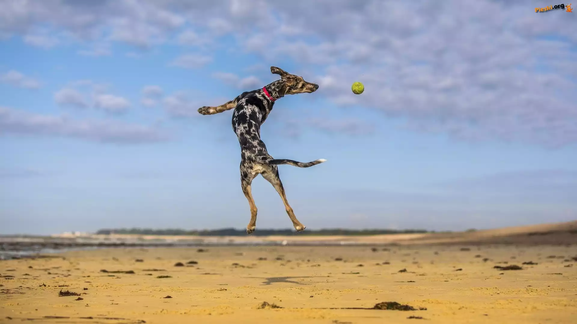 Zabawa, Pies, Piłeczka, Wyskok, Pieski