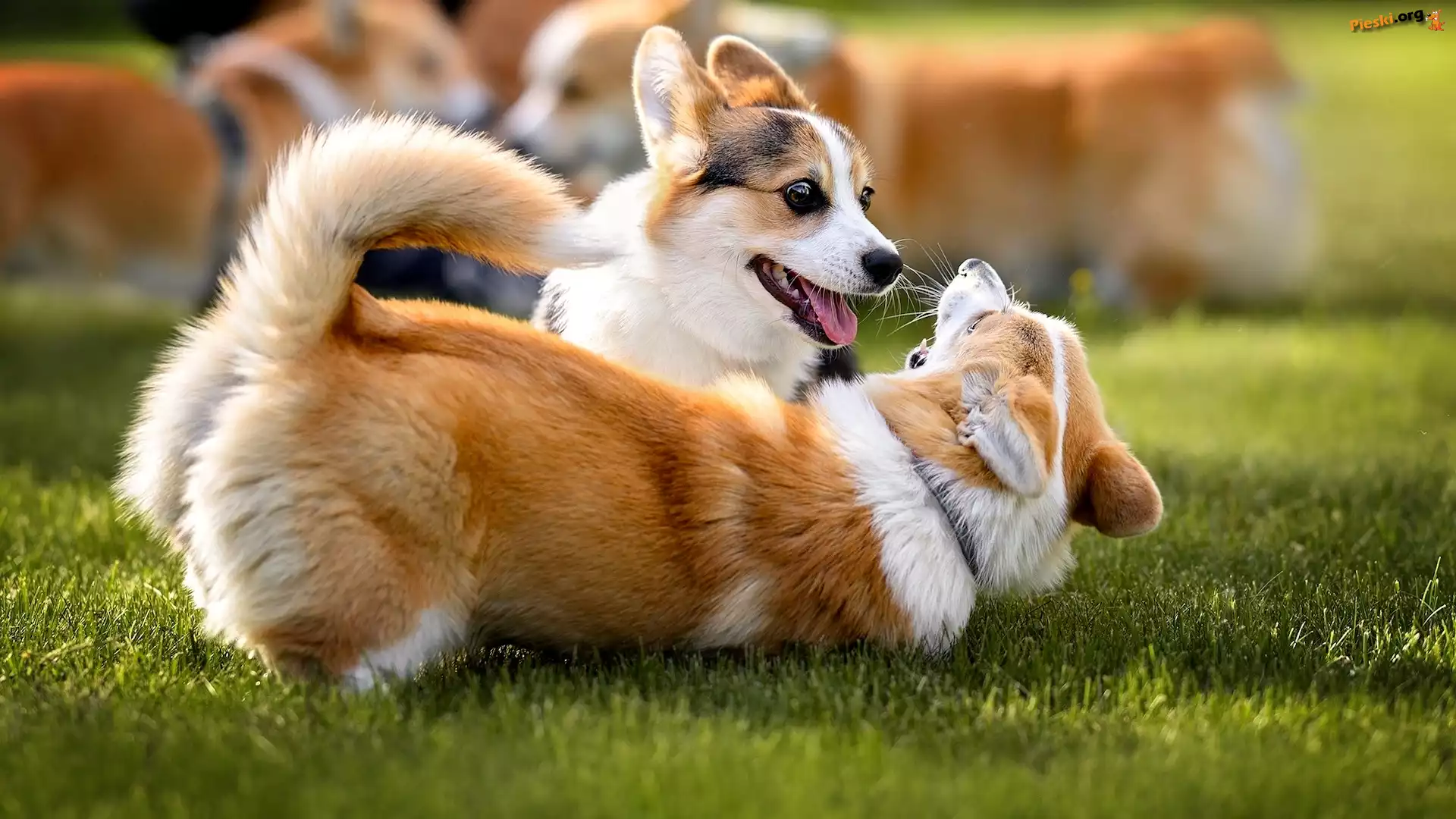 Welsh corgi cardigan, Zabawa, Dwa, Psy, Pieski