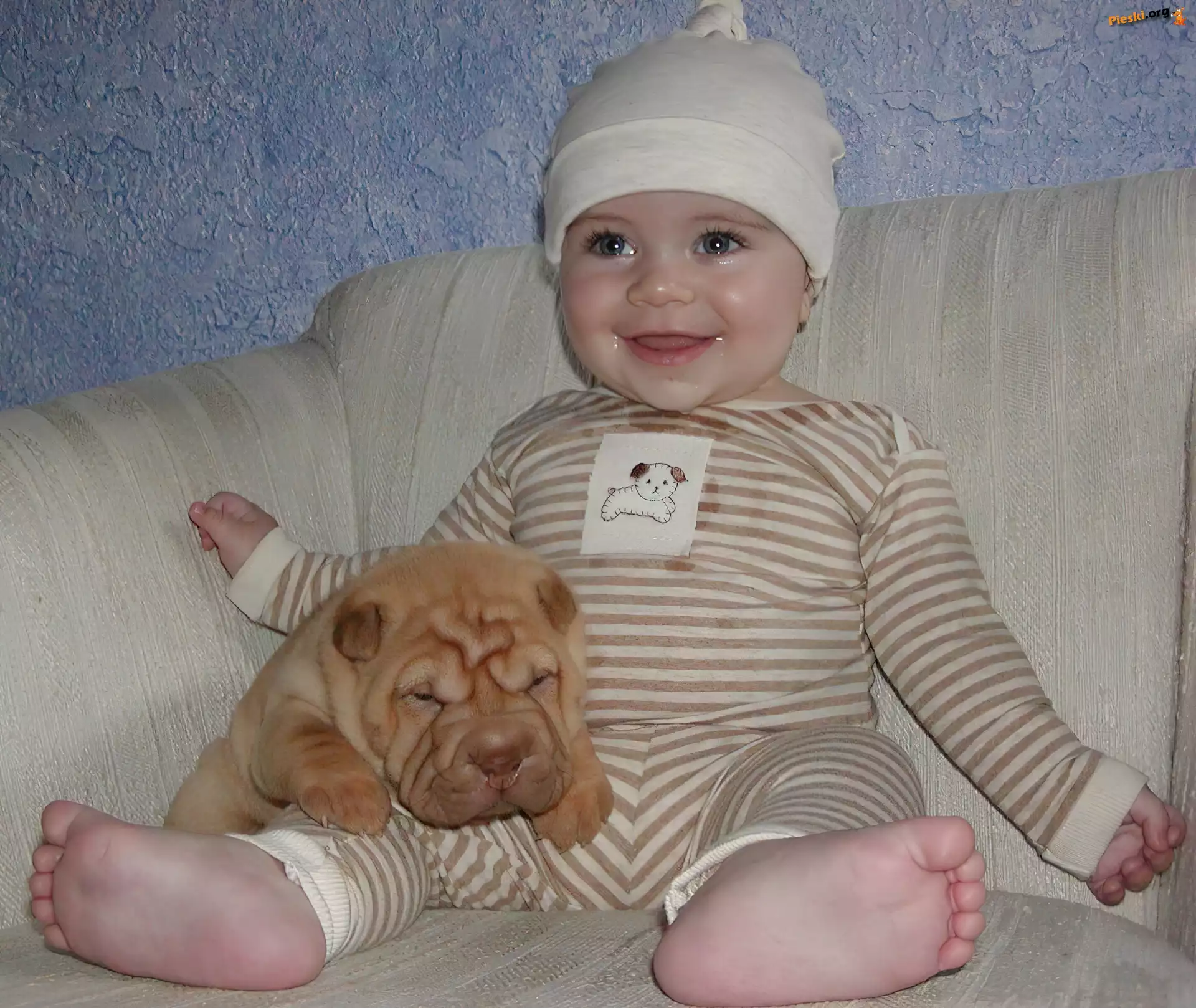 zadowolone, szczeniak, słodki, Shar Pei, dziecko