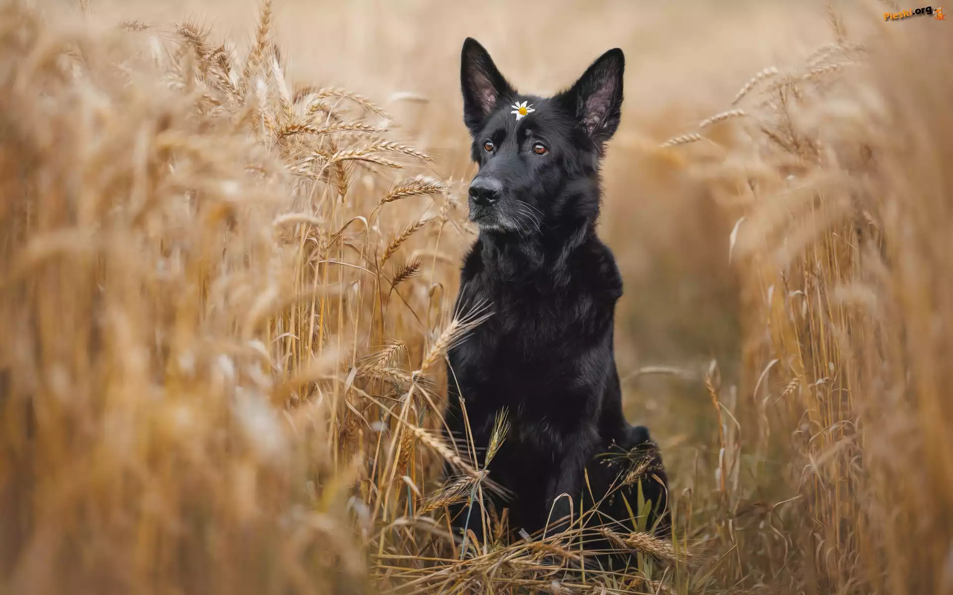 Owczarek niemiecki krótkowłosy, Zboże, Pies, Pole, Czarny, Pieski